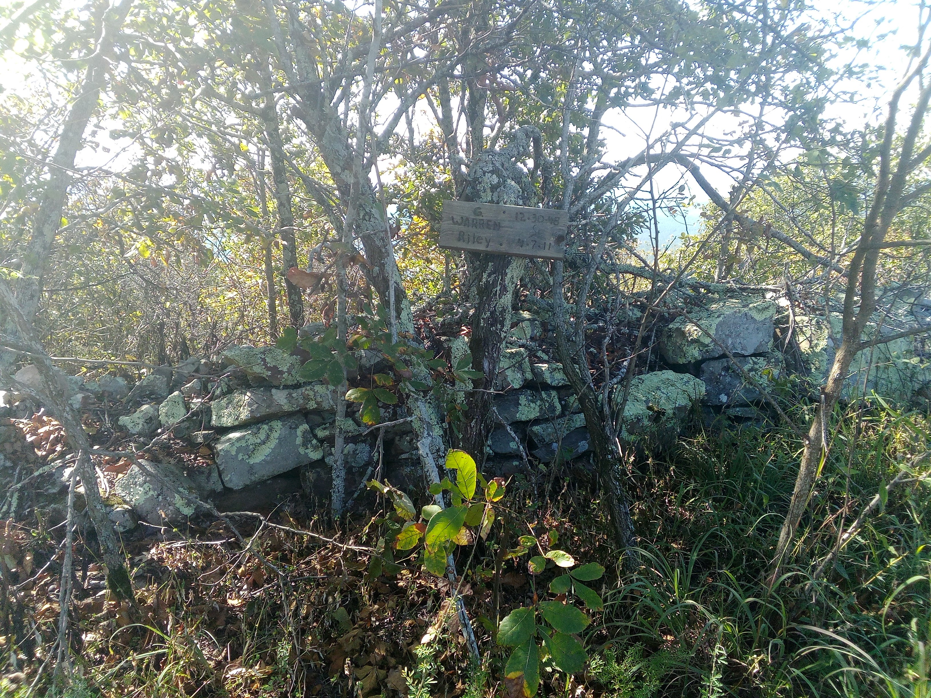 • Slept in the Big Branch shelter. It’s probably half a mile steeply down below the trail, accessed by some switch backs, a former forest road, and some single track which crosses a stream bed which was disconcertingly dry. I’d picked Big Branch shelter as the day’s destination for the reliable water source. Exploring a little by headlamp (as a guestbook entry from Friday, October 13, noted, the place is “spooky”), I did find some pools of water in the streambed nearby. The land was flat and so easy to get lost. Despite having gone less than 50 yards from the shelter, I had left several markers to find my way back and was well served by them. On the way back, I couldn’t see the shelter until I was about 10 yards away. Night changes so much.