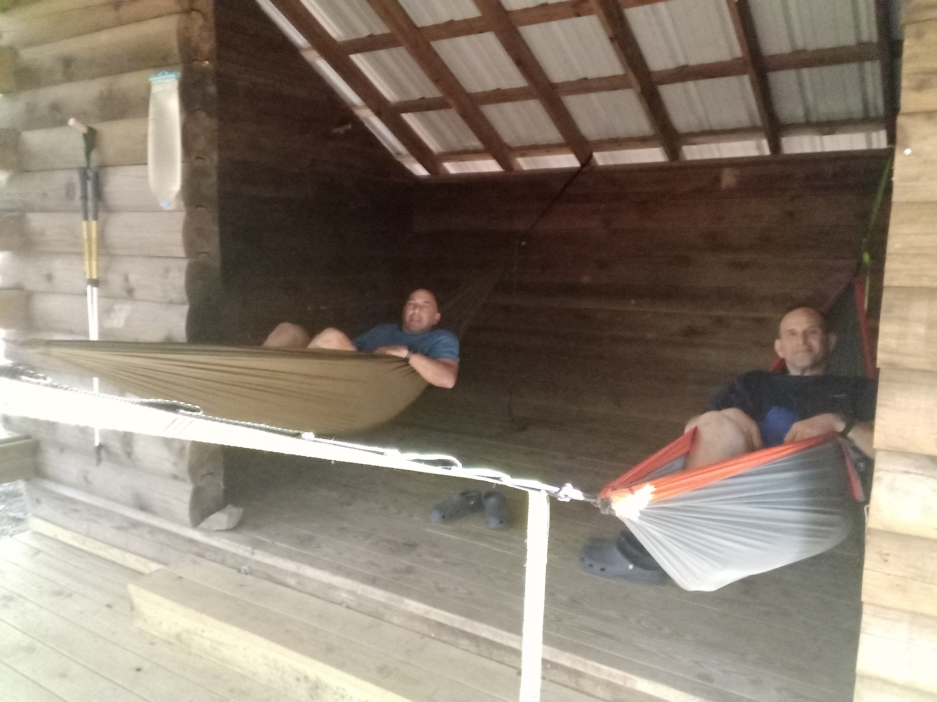 After bringing our bags down, I brought the canoe around to a little cove and IQ helped me pull our “toasty tomato” out alongside theirs. The rest of the day was spent lounging, hammocking, resting, relaxing, and reading.