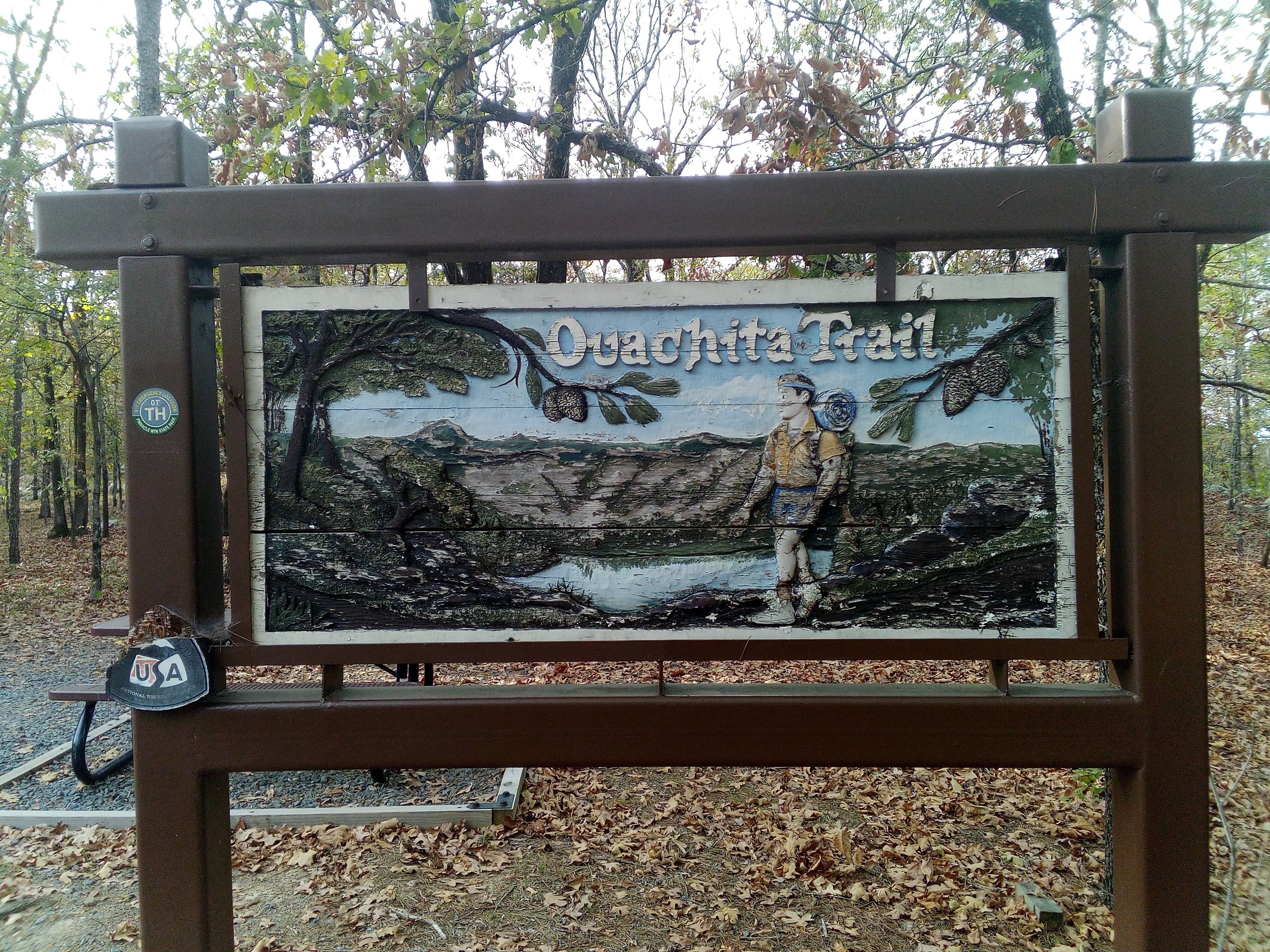 I hiked the Ouachita (“Wash-i-tah”) Trail on what might be called a whim. I’d wanted a week to myself and didn’t want to do much planning. I’d never been to Oklahoma or Arkansas and the weather looked better there than in Anchorage in the fall (the going wisdom in Anchorage is that if you went on vacation from Thanksgiving to Valentine’s day, you wouldn’t miss much). I was hoping to catch some fall colors as I’d been recovering from illness while colors changed at home. While pleasant and possessed at times of a calming beauty, my rushed walk lacked views and was beset with minor drama including the failure of most record keeping devices. I even left the maps which I’d been annotating with experiences and events on the airplane home. What’s left here is hastily reconstructed from memory and decorated with the few pictures from the cheap replacement phone I was able to pick up with help from a Lori, the angel in the tiny town of Story, two whom I’m deeply grateful.