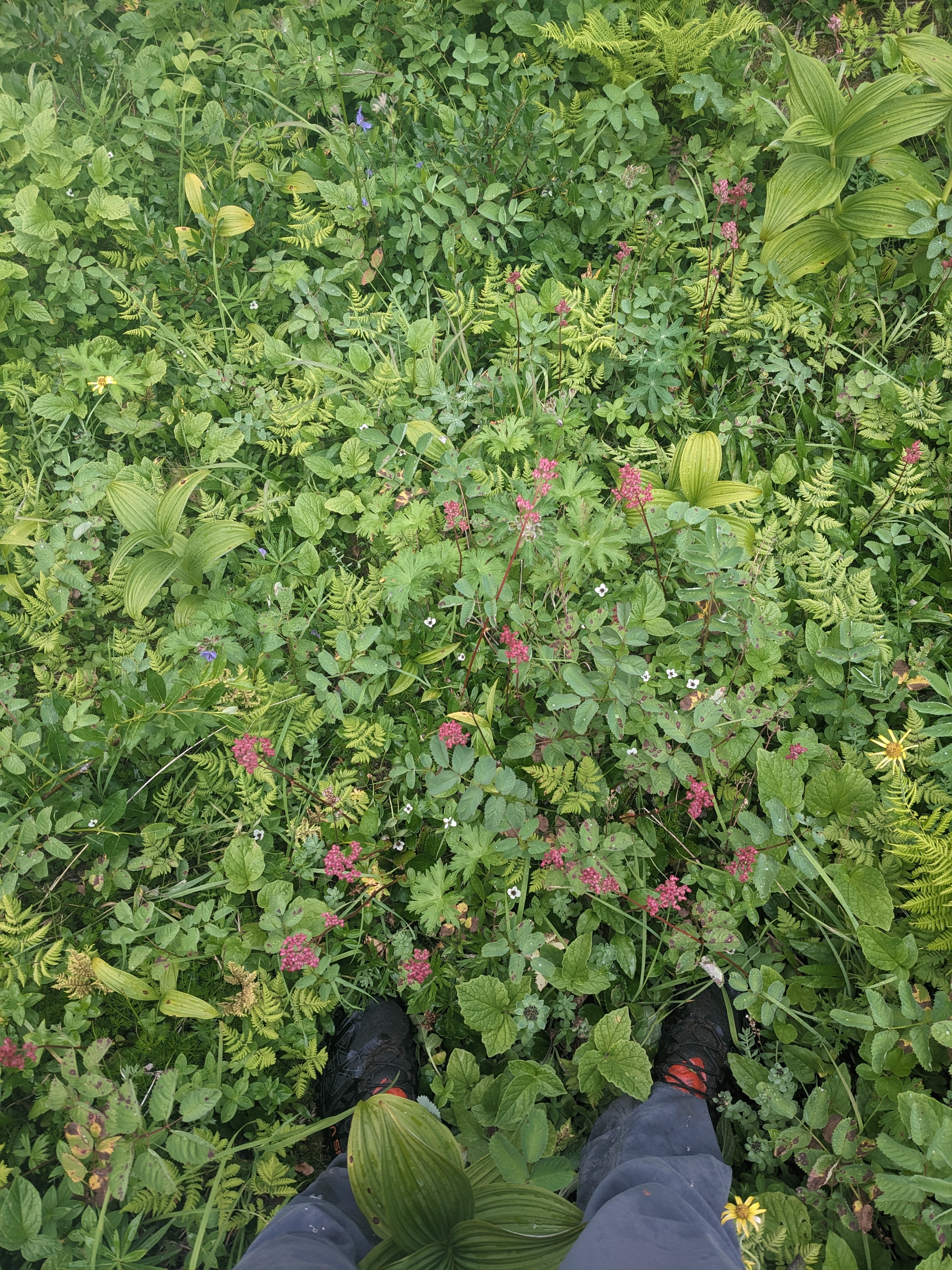 This hike would make we wonder about the qualifiers we give to trails. When is a “trail” a “route”? When is a “social trail” more of a “game trail”? If there’s a boulder field and it’s obvious where to go but there’s no canonical way to get there, is it still a trail? If you happen to get the same place everyone else did by following broken vegetation, scuffed lichen, and sometimes your own nose, is that a trail, a route, a way, a ‘shwack, or just an adventure?