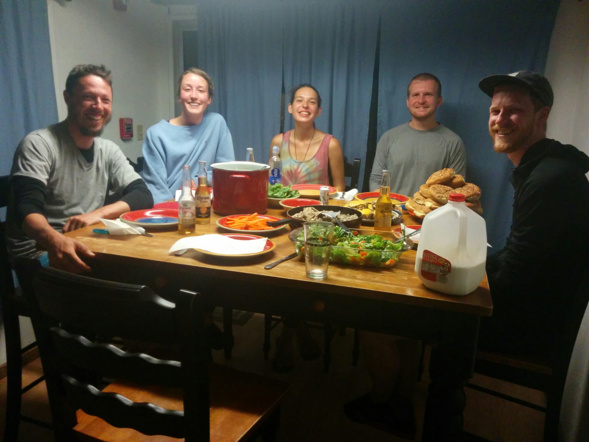 The day ended well when Jan, Sven, Julie, Kate, and I all made dinner together. We had cheeseburgers, salads, fresh vegetables, mashed potatoes with beans and other veggies mixed in (a graceful recovery from an attempt to make potato patties which were too crumbly).