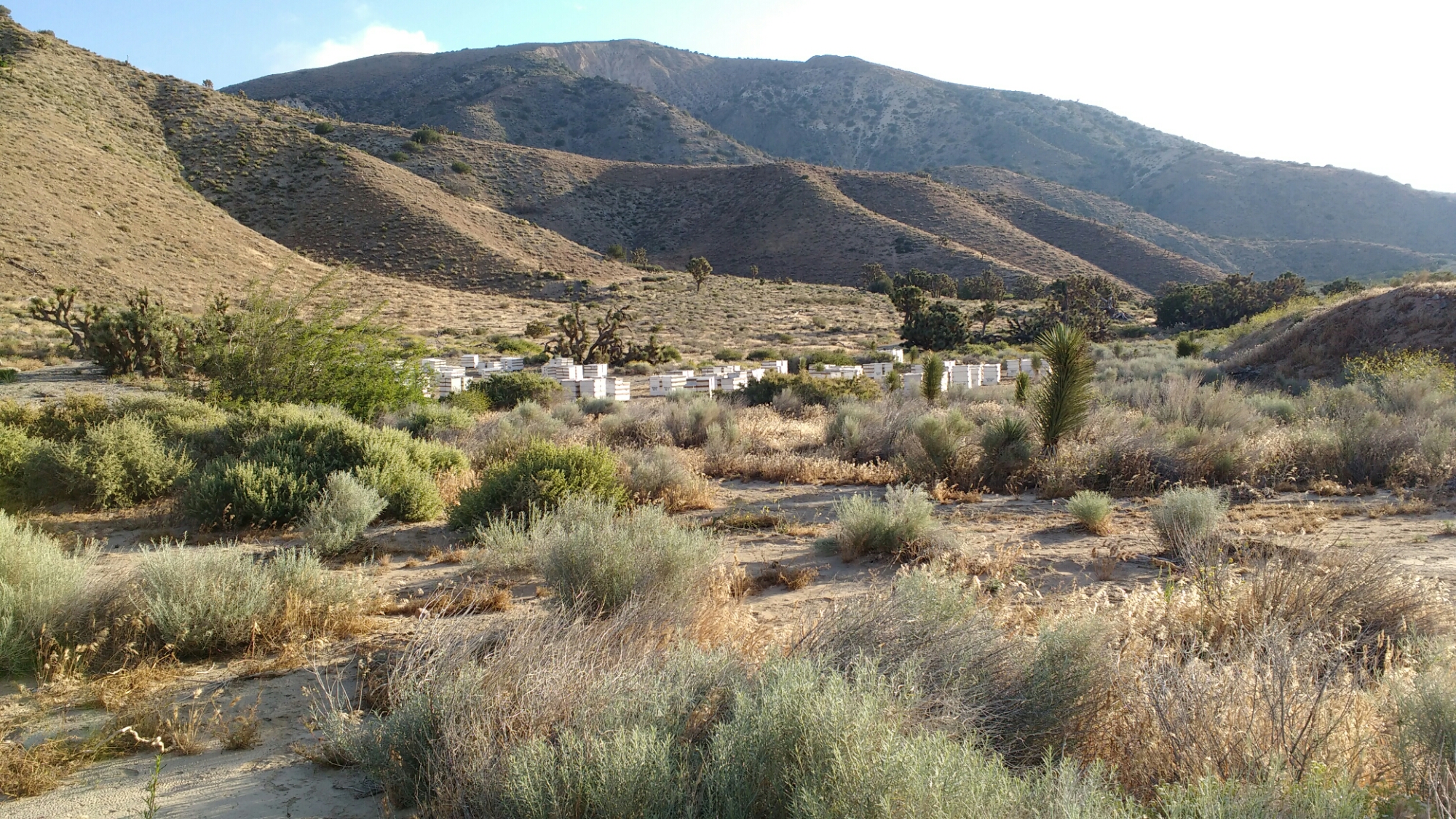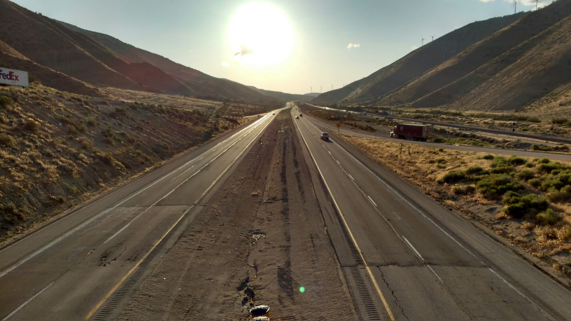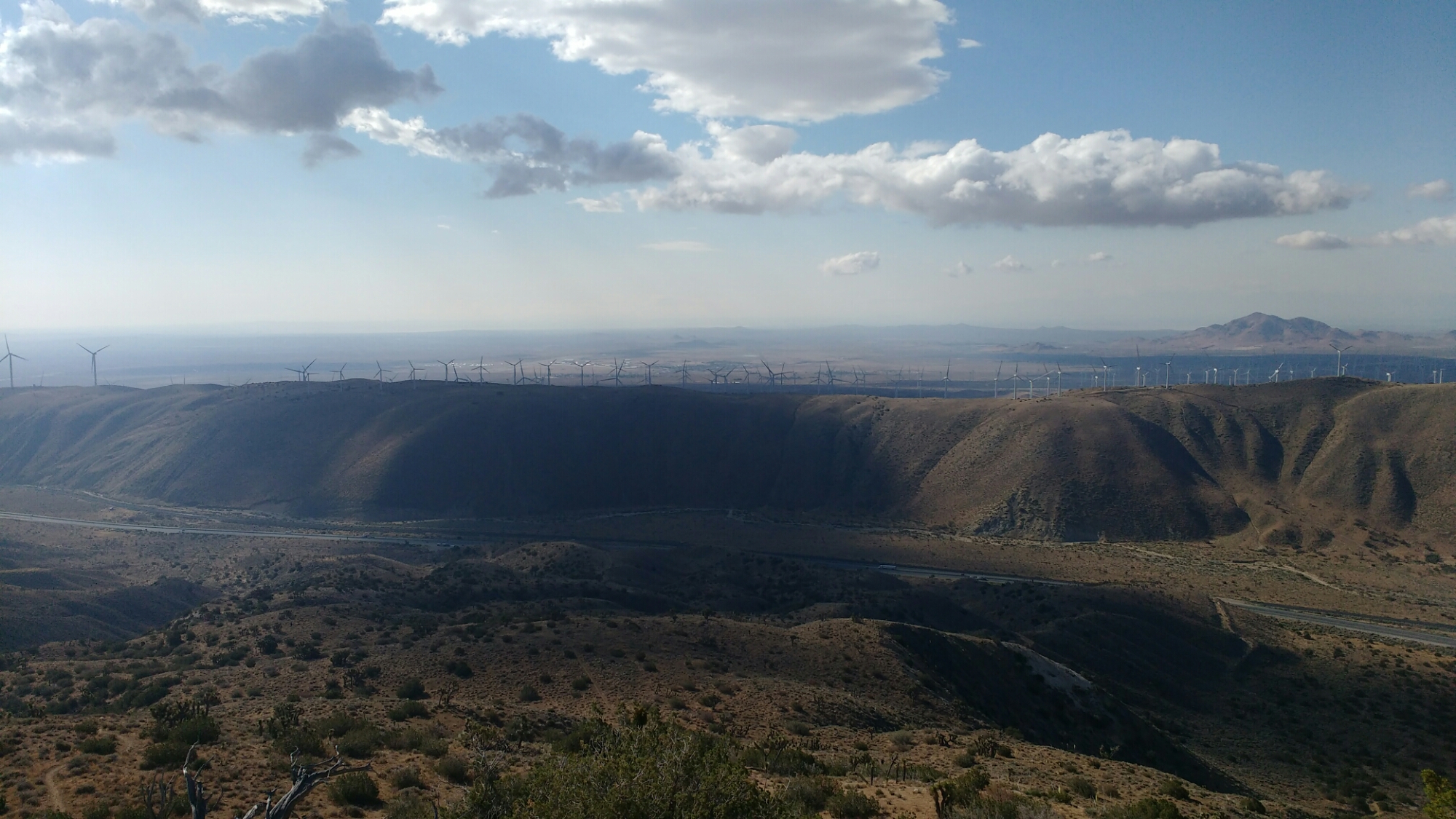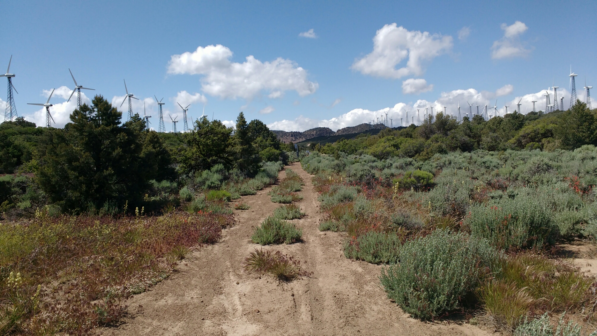 Starting in the late afternoon from Willow Springs Road, I walked though a windy windmill farm, eventually finding a relatively sheltered place about a mile short of highway 58.