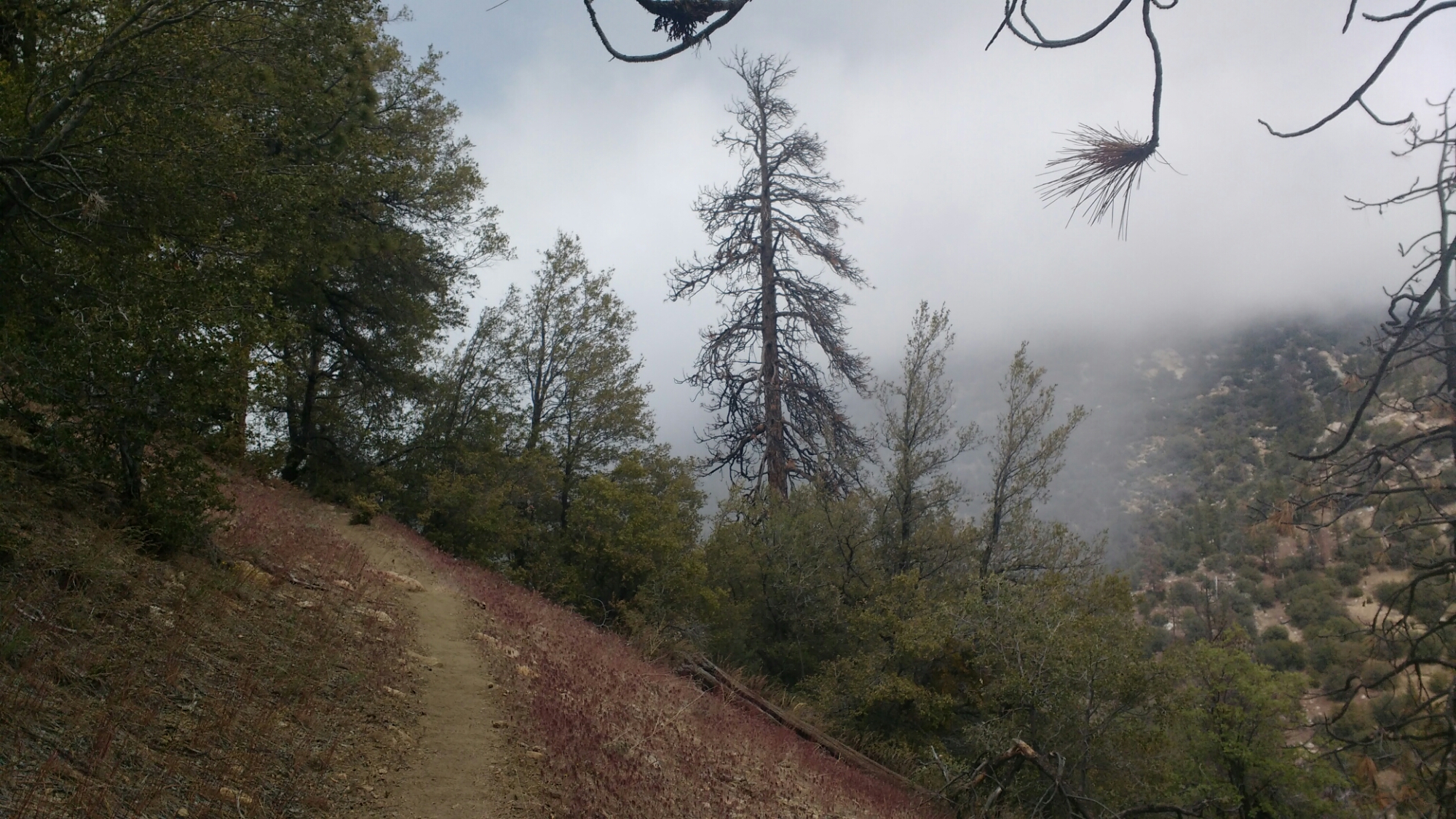 Everything looked ghostly. Condensation would collect in trees and cause small showers beneath them and my shoes acquired a thin layer of mud. The grass and fox tails which line the trail were we as with dew so my lower pant legs became damp as well. This seems like a foretaste of what the trail will be like in Washington where it’s sometimes jokingly referred to as a hiker wash.