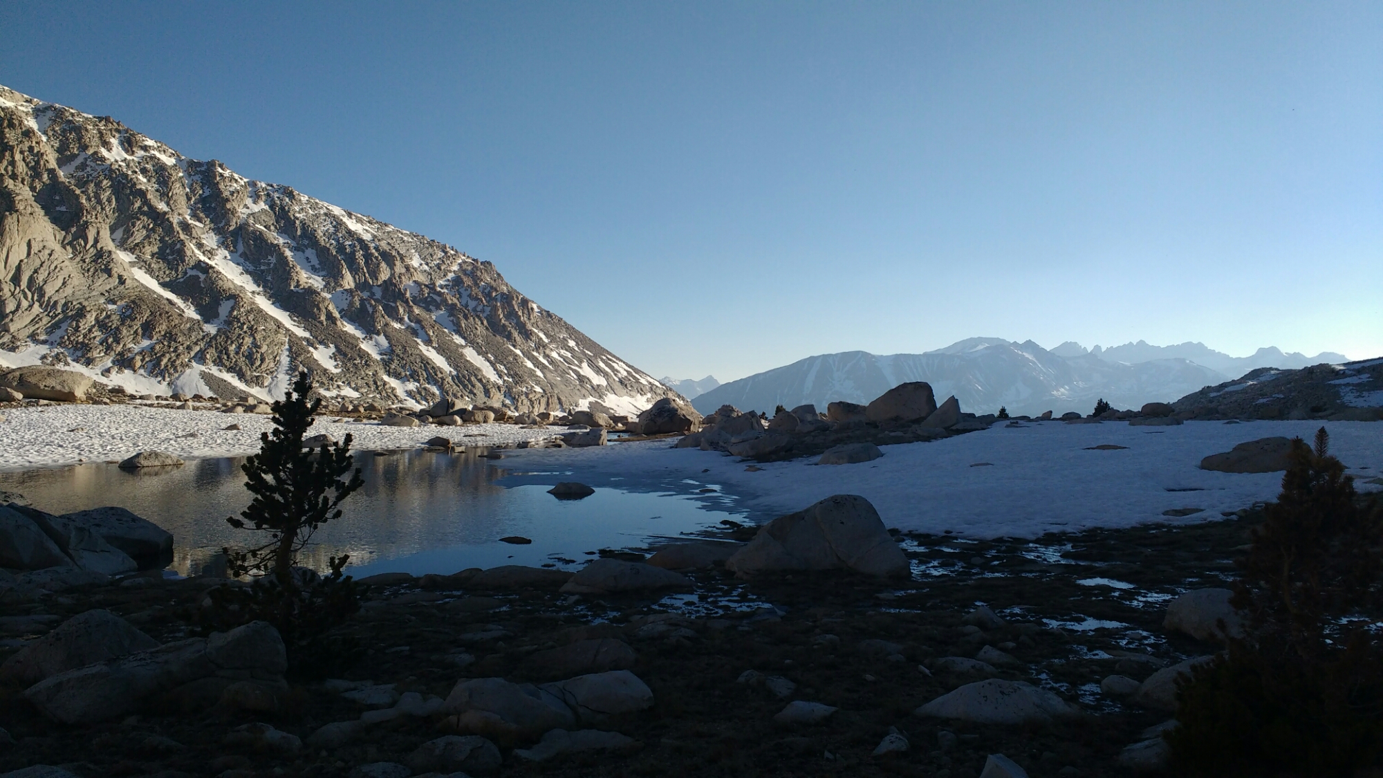 I was walking out of Chicken Spring Lake at 5:35am before I heard anyone else even moving. There was a good bit of up hill before getting to Crabtree Meadows but only because I had to descend to it first and wanted to be done with the climb before noon. Notably, that downhill took me into Sequoia and King’s Canyon National Park where bear canister are required.