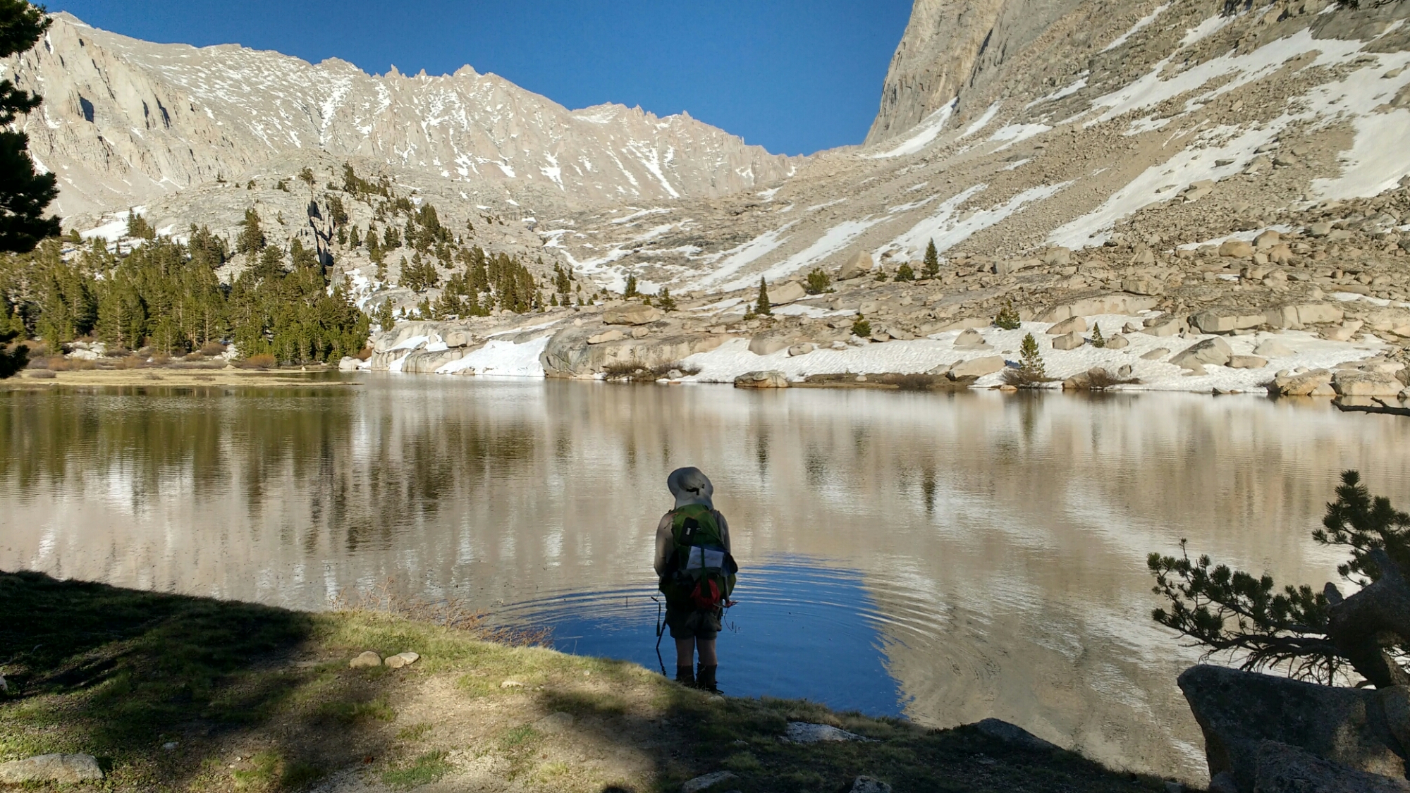 The walk from the PCT to Guitar Lake (it’s a side trip) was wondrous. The effect was heightened by hiking shorts and flip flops at an ambling pace, getting my feet wet here and there for no reason. I felt like a child at play. It was wonderful.