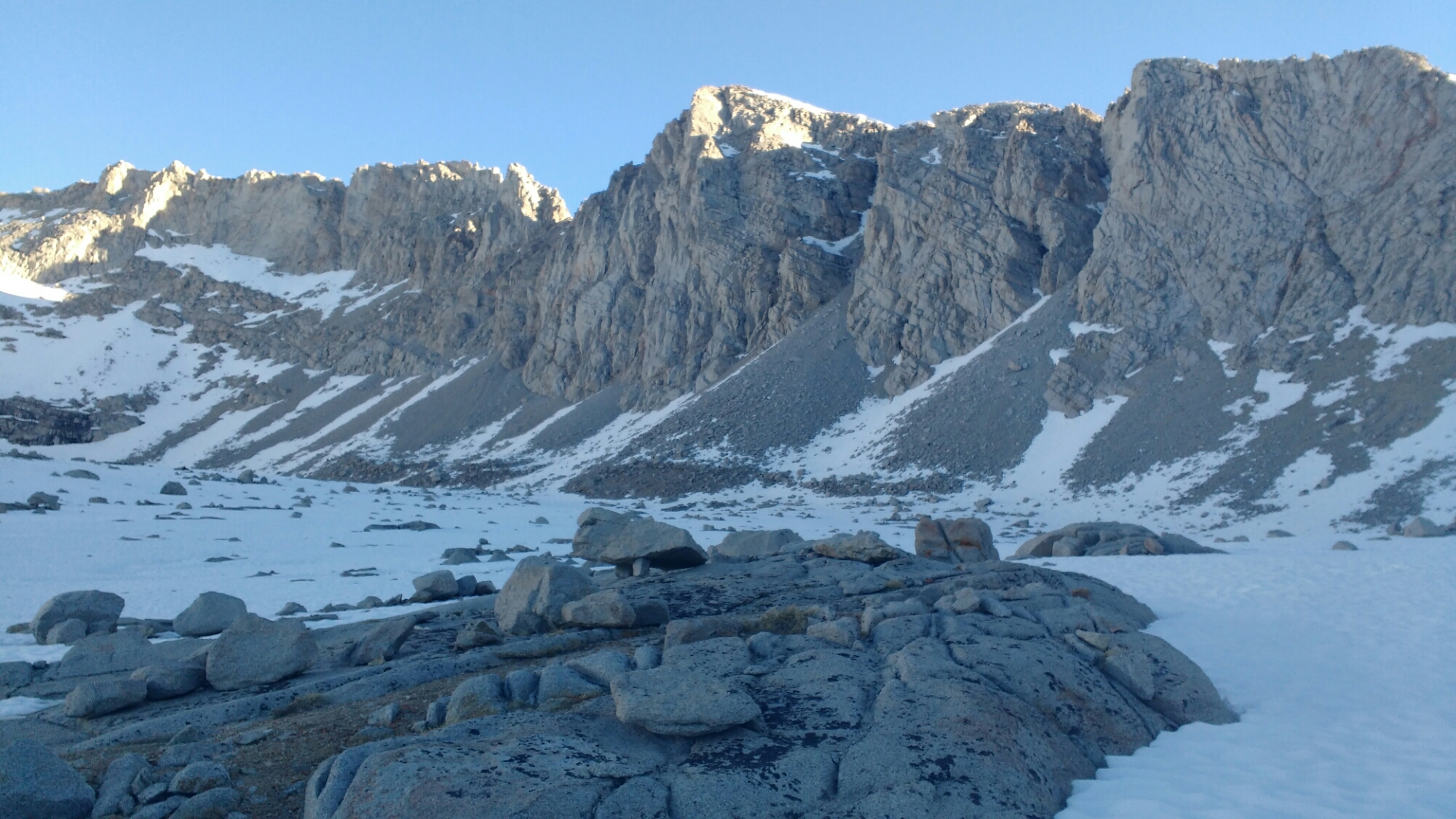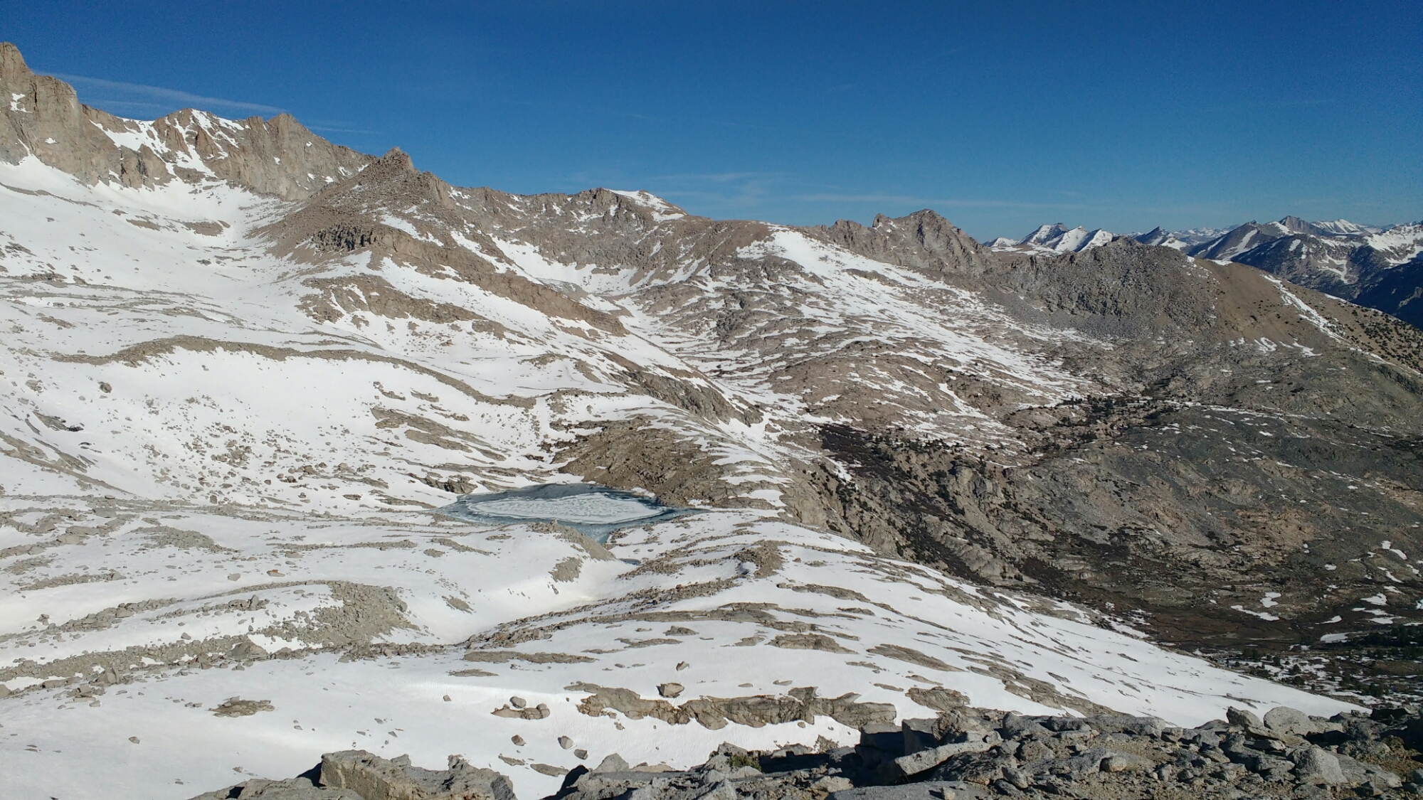 At this point it was 12:30pm. The Rae lakes, who have been recommended to my by multiple sources lay just over 4 miles away. Unfortunately, Glen Pass was just over 2 miles away and despite being hungry, I’d front-loaded most of my food consumption for the day, not expecting to do much after Forester. I decided to go for it because the Rae Lakes would be beautiful by sunset and I could go as slow as a half mile per hour and still make it. Half a mile per hour is really slow. I dug immoderately into my discretionary supply of bannana chips (one bag of bannana chips and one bag of dried less are my only non-rationed food at this point since I didn’t have room to carry much extra leaving Kennedy Meadows and had given away what extra I did have) and slowly put on my gaiters since the afternoon snow would be soft and deep post-holing likely. Then, putting one foot in front of the other at a pace which I think of as a pleasant plod, I set off.