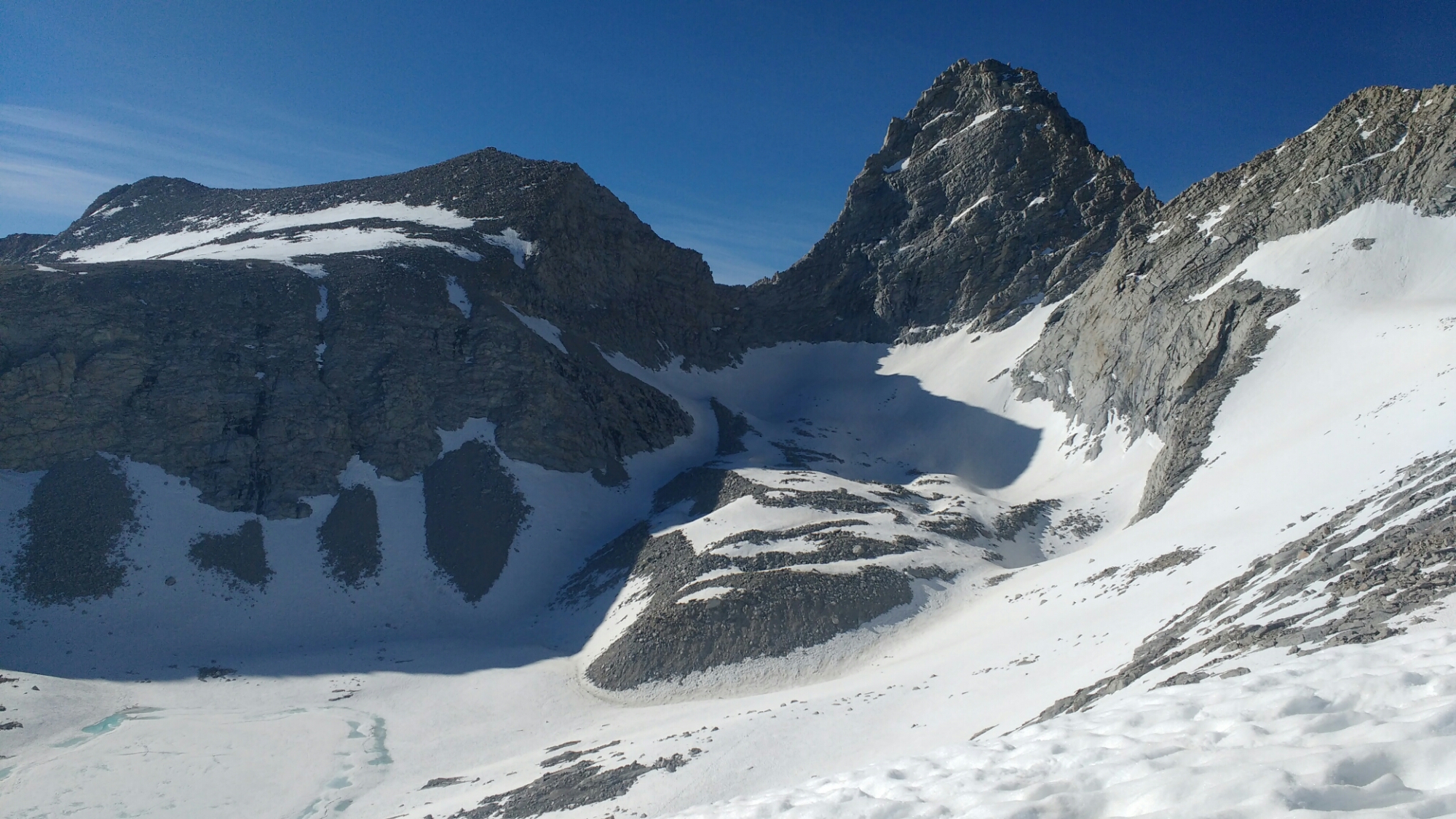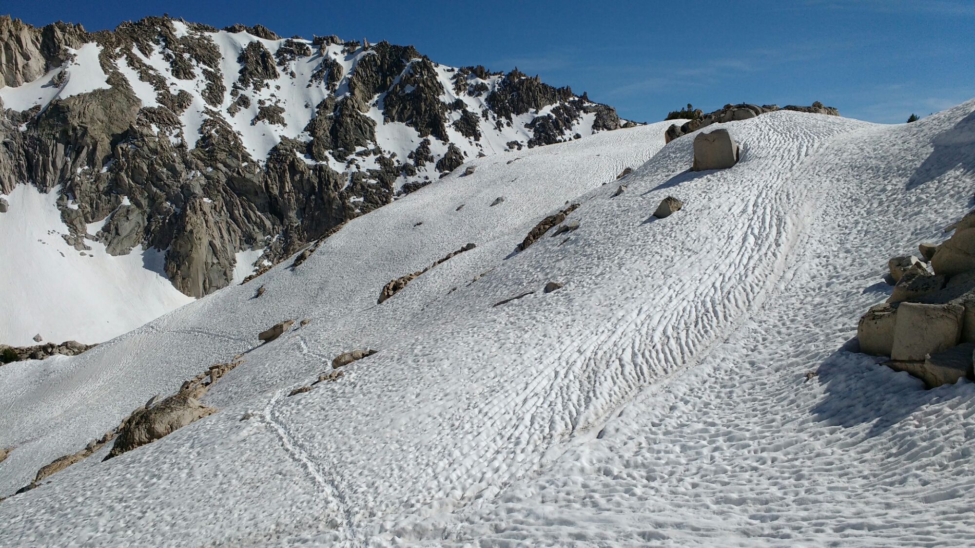 After following that a short ways you glissade (slide on you butt) since the face is steep (you can’t see the lower part from the upper) and the trail is completely buried.
