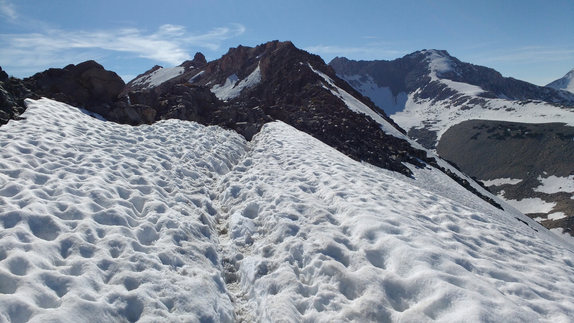 Forester Pass is infamous for the patch if snow you have to cross to get across a chute just before the top of the pass.