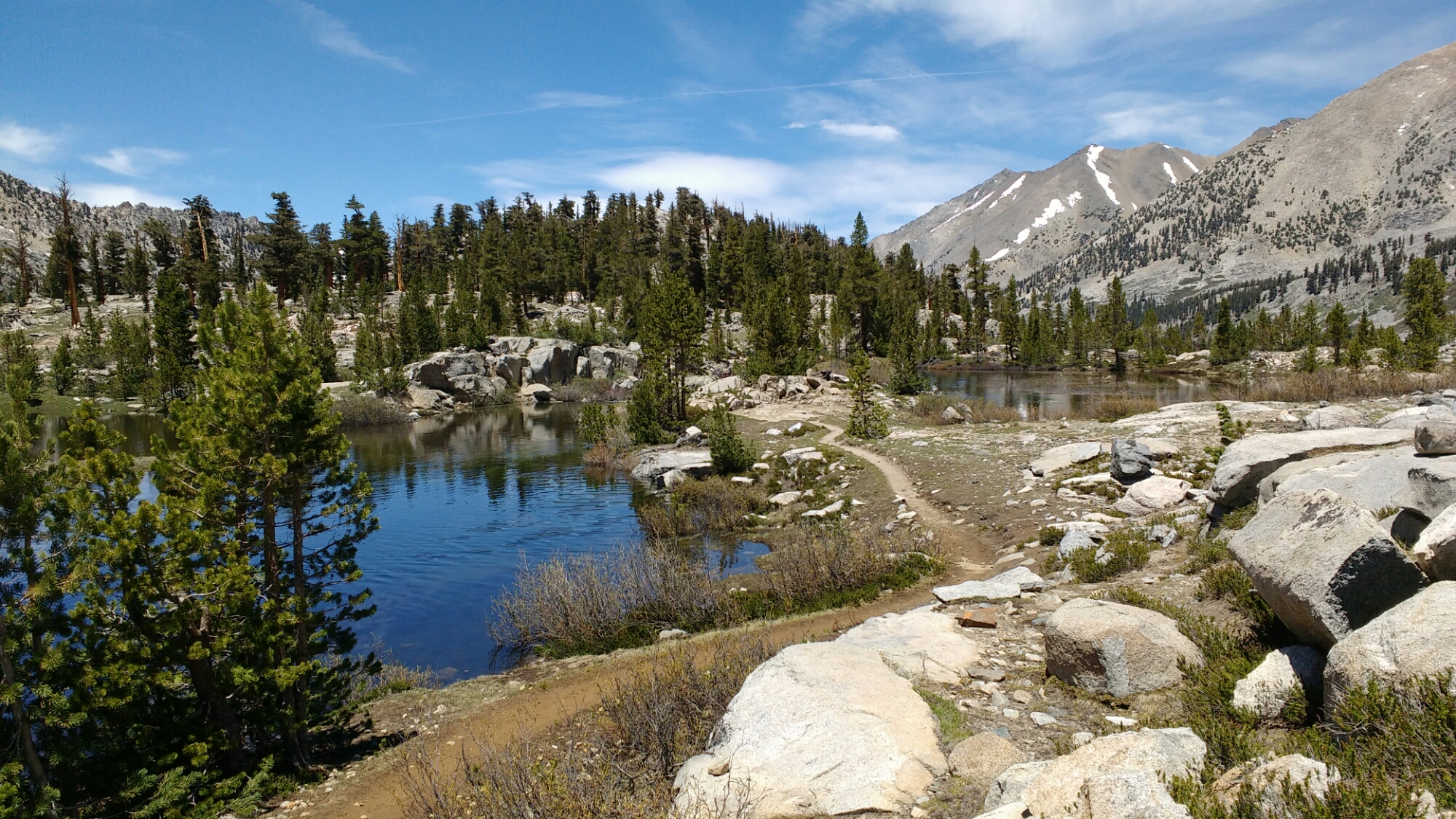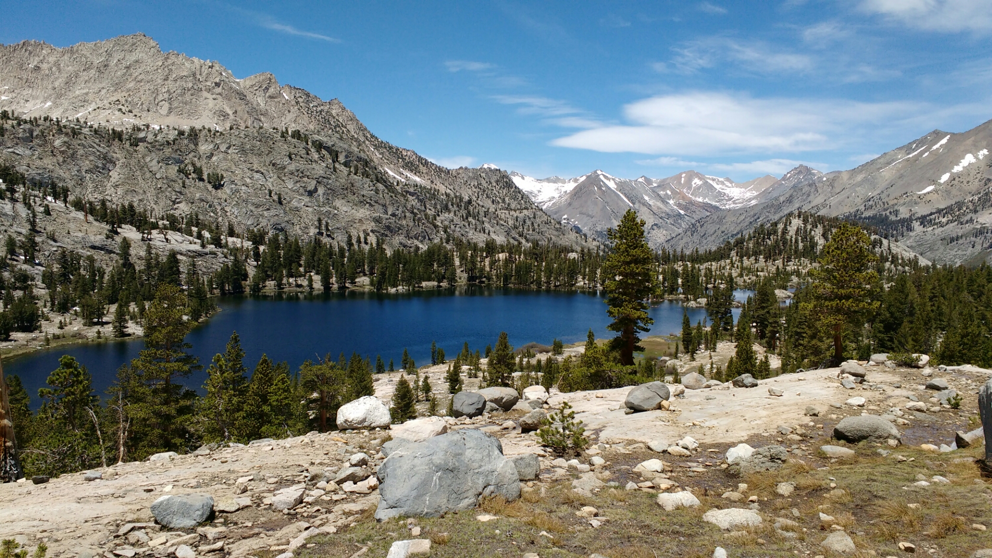 I woke up late today which was very much in the spirit of the day. I spent the morning drying gear and enjoying the view. I only need about 9 miles to get set up for Pinchot Pass tomorrow. Here’s the view when I woke up. The Rae Lakes were a good place to take a nearo.
