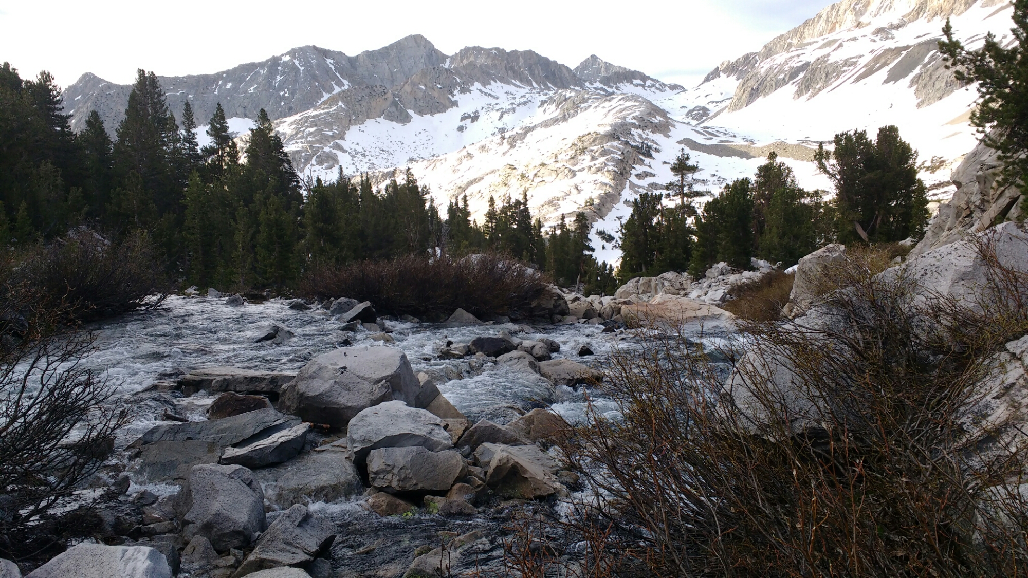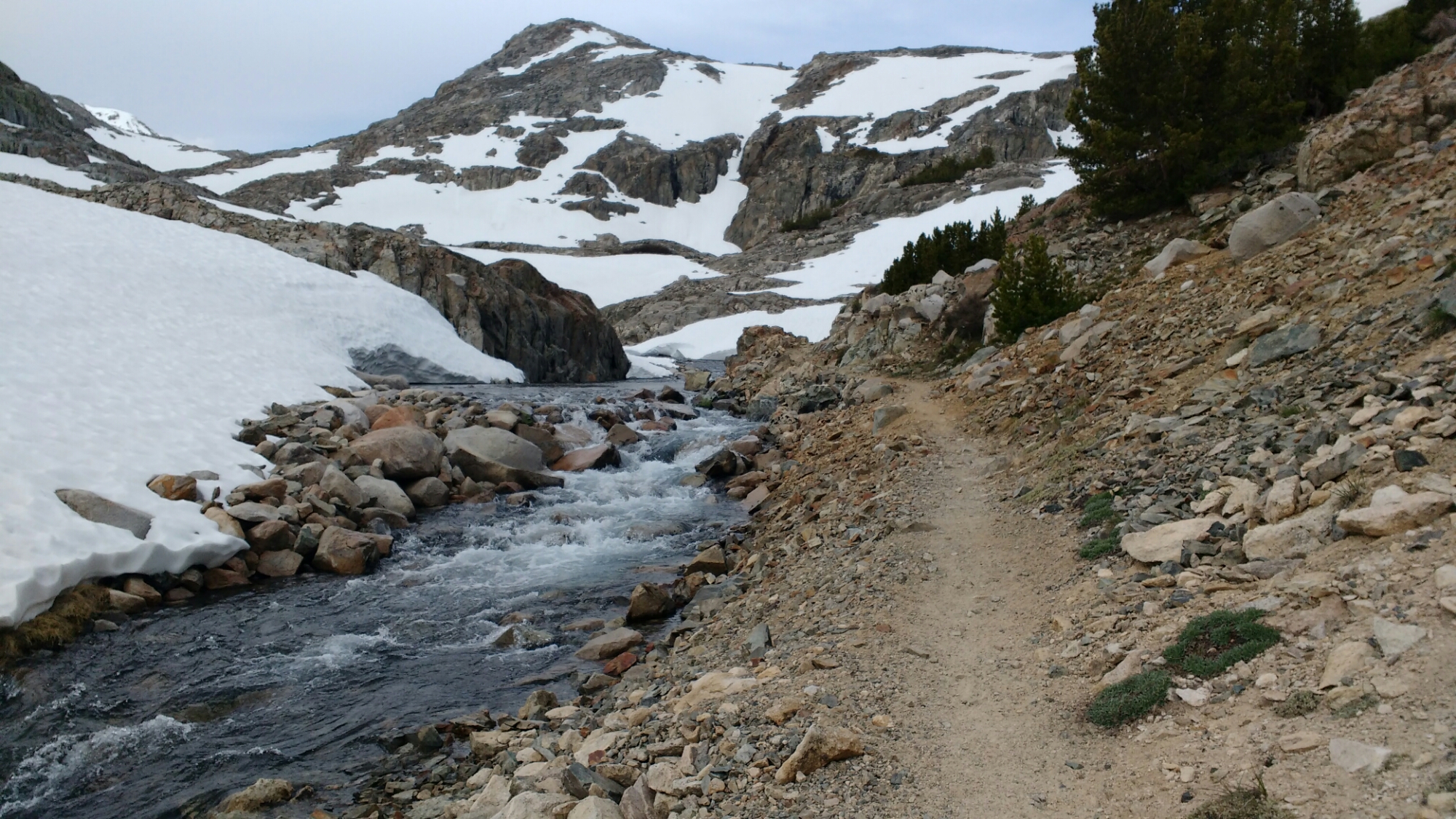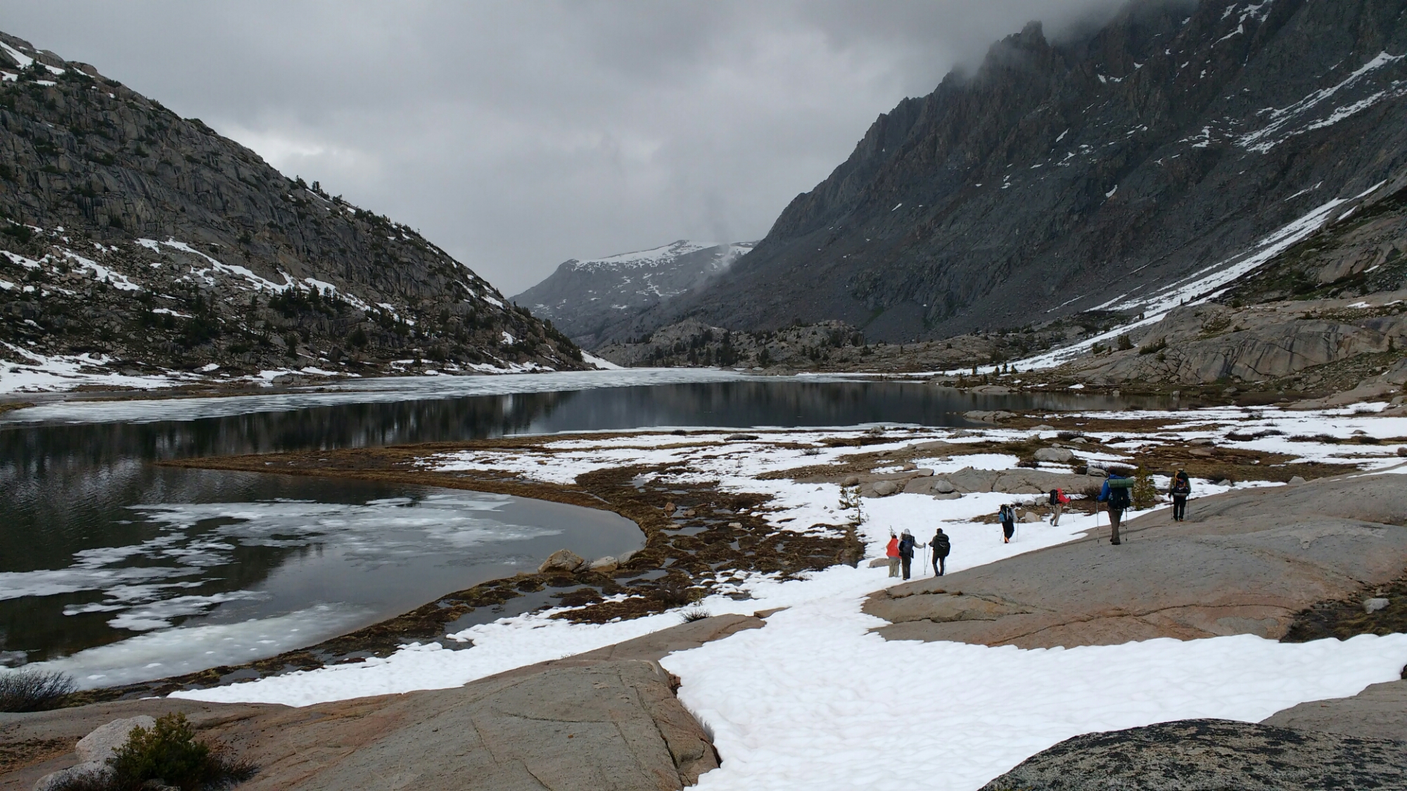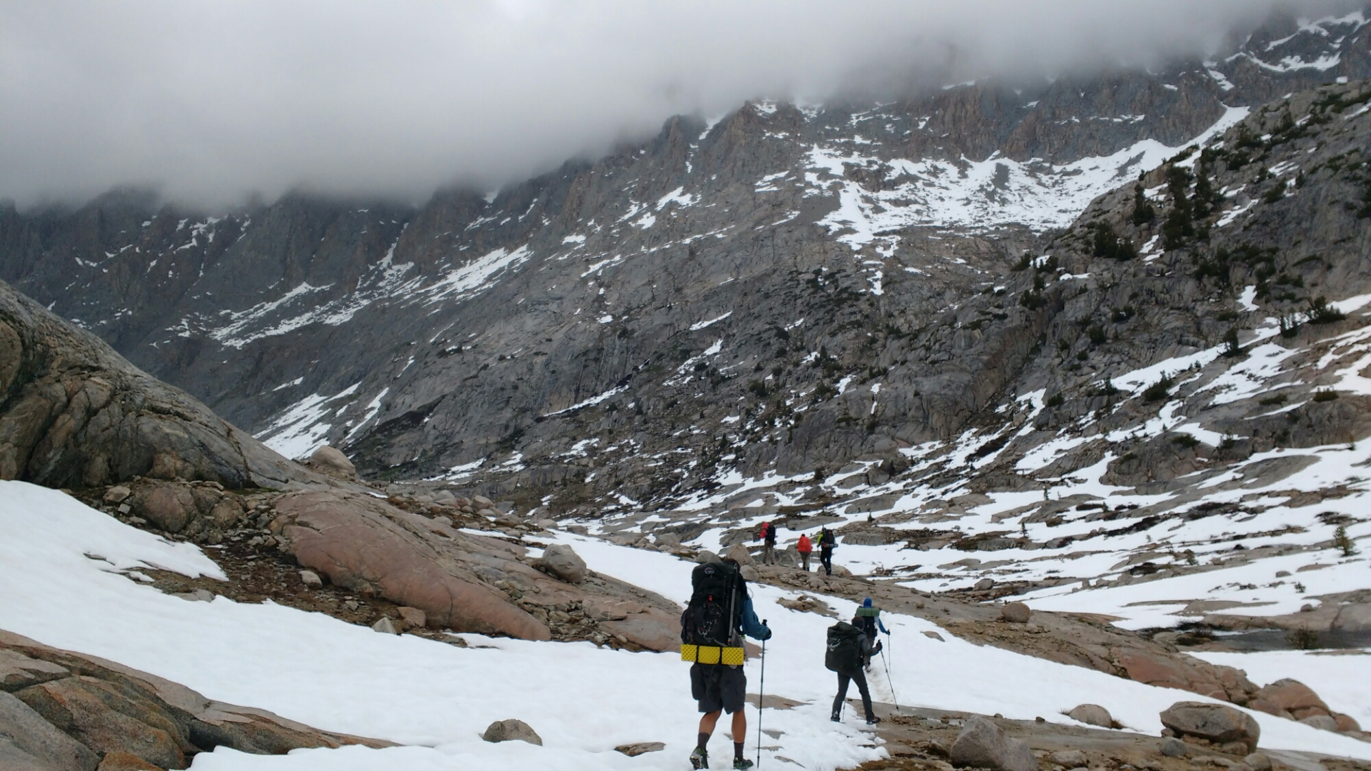I had been extremely lacking in energy last night (ex: I got winded collecting fire wood) but wound up getting up around 4am anyways which is good because it was still 6 miles out and 2000ft up to Muir Pass. We’d been warned that there were 2 miles of snow on this side if the pass and 5 on the other. Early mornings mean hard snow which is easier to move on.