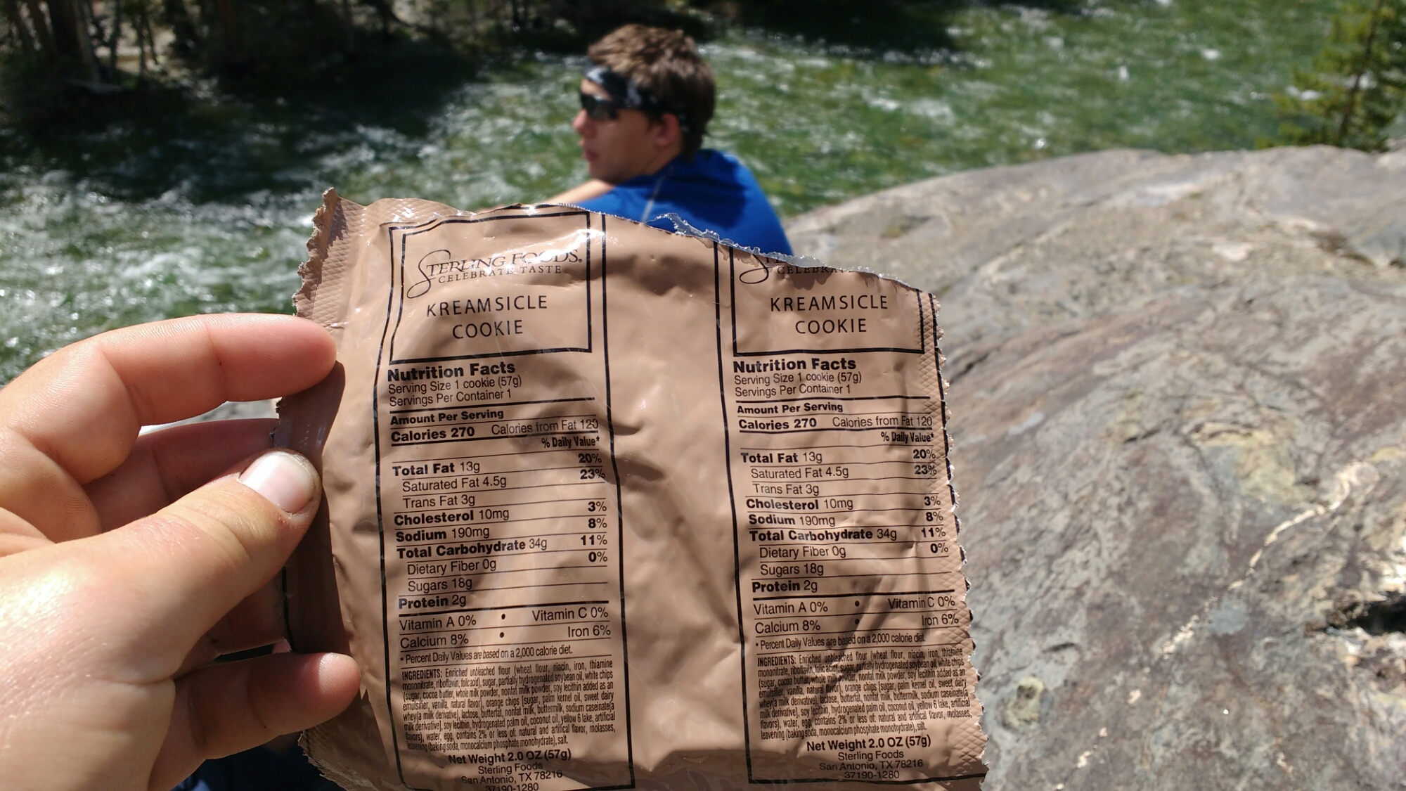 Brandon and Matt introduced me to MREs which they’d brought. On the whole, they seem slightly better than most rehydrated backpacking food. There was a Creamsicle Cookie which was so good I can’t believe it’s not more widely available.