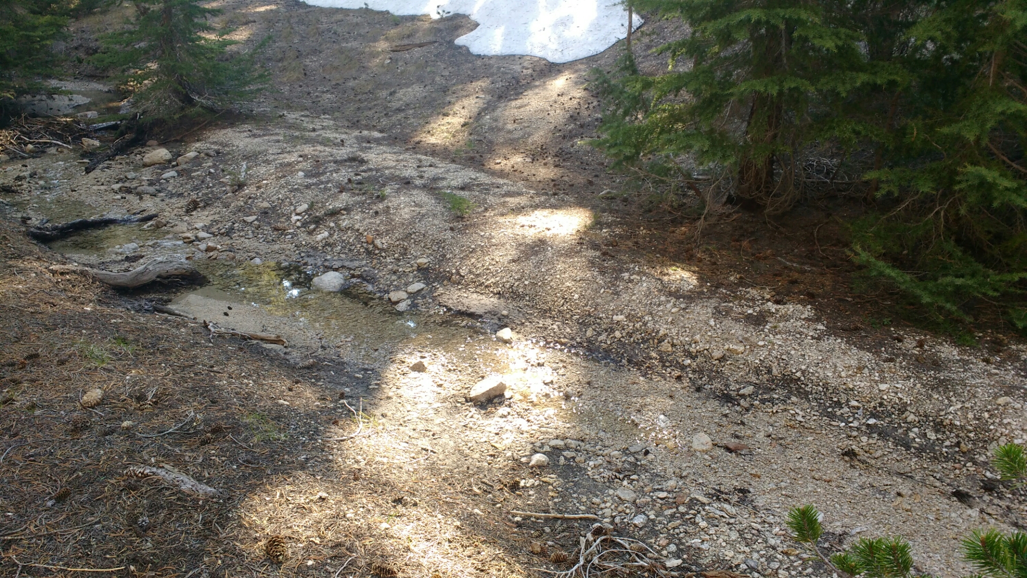 I didn’t know this before but sometimes streams just disappear into the ground. This is the end of a small, but not insignificant stream which had been crashing merrily down next to the switchbacks I’d been descending.