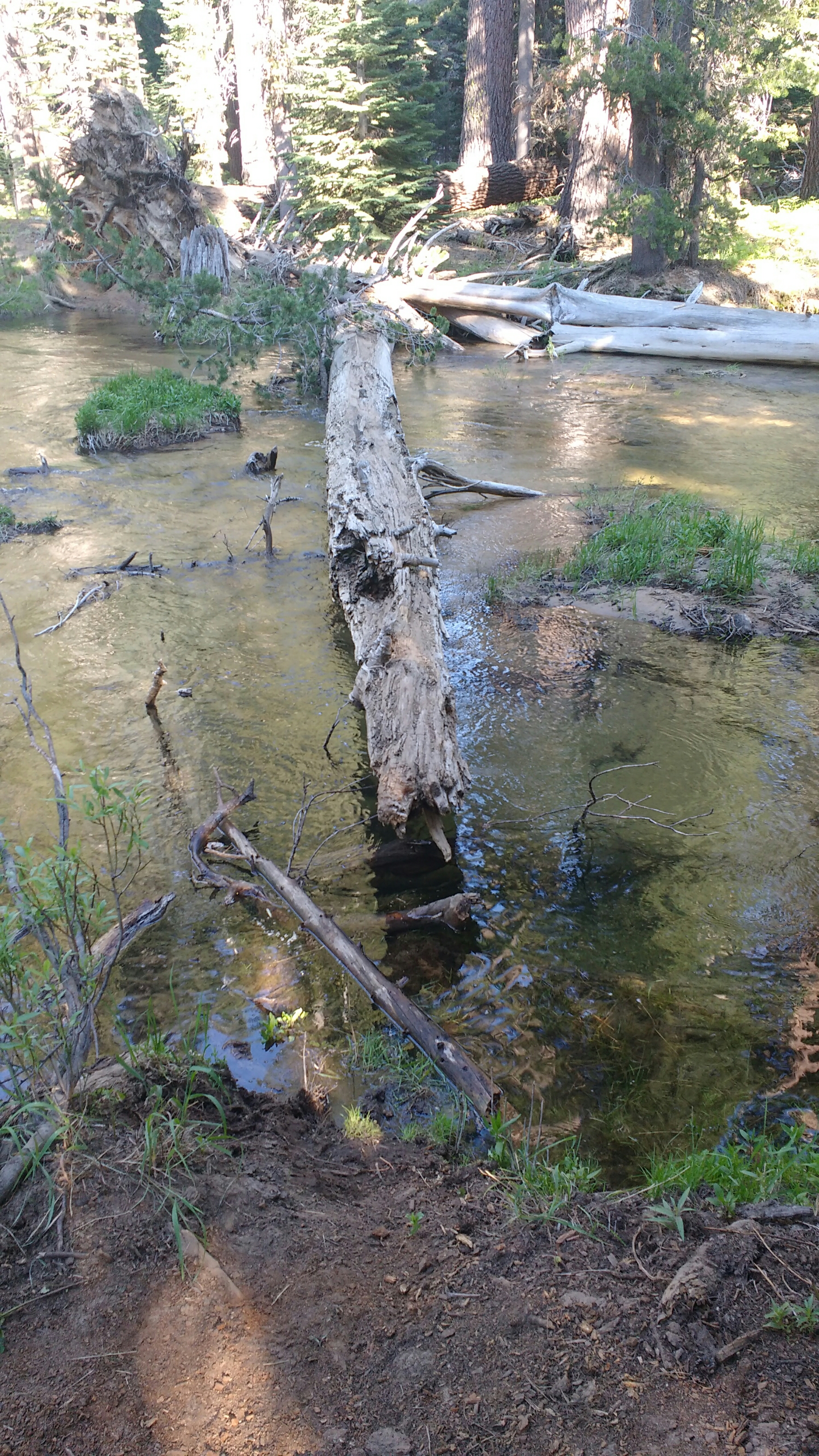 Here’s the log bridge for one of the streams near Benson Lake. It’s a great illustration of the word almost. I was able to hop the gap but Waterboy has a hurt foot and had to find another route.