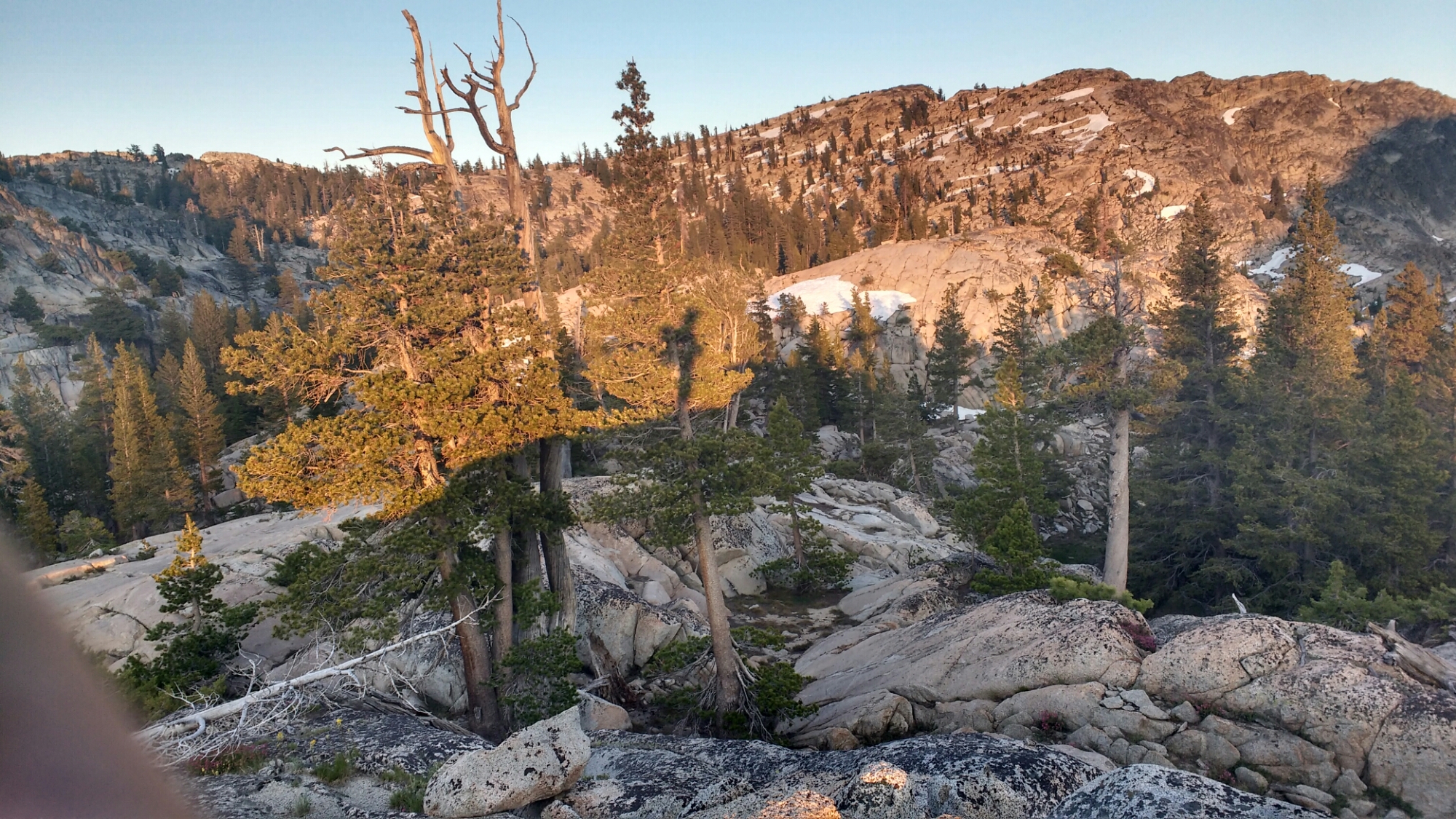 The impact wasn’t the same this time for many reasons but I was really glad to have slept again, “among the giants of creation” as I’d written after sleeping here last time. One of the reasons it didn’t have the same effect is that on this trip, I’ve met bigger giants on this hike. One thing today did show is that it’s not just the size, ruggedness, and snow which make a mountain trail inspiring.