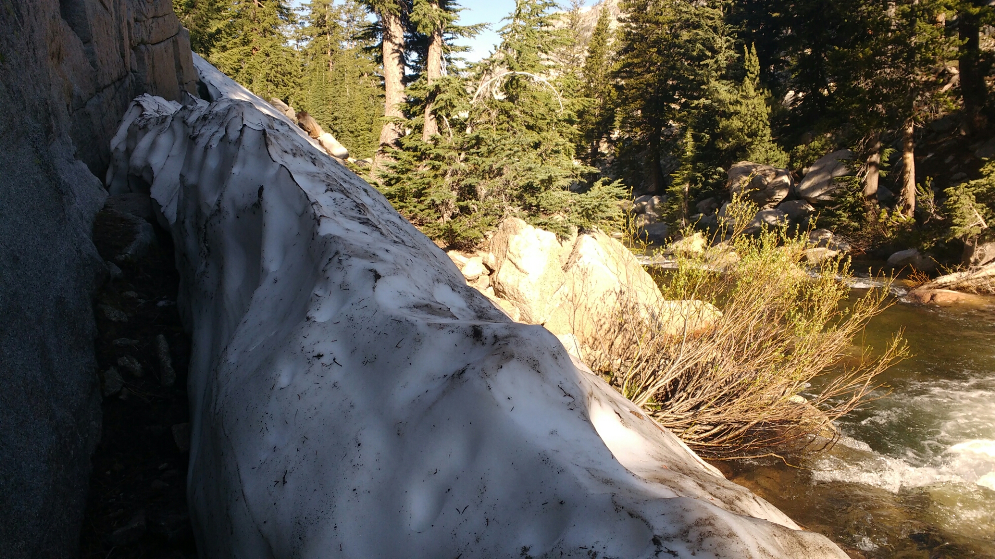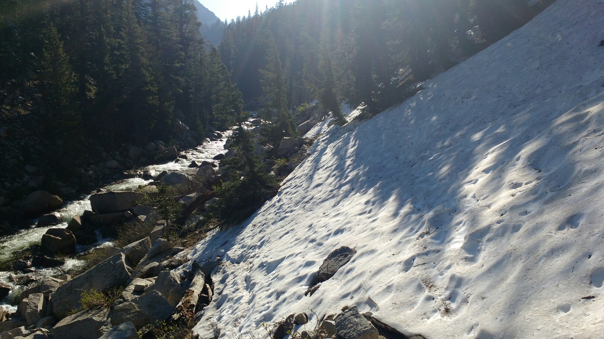 After a steep but short descent to the river, you had to squeeze between the rocks and snow because the river was too close to walk outside.
