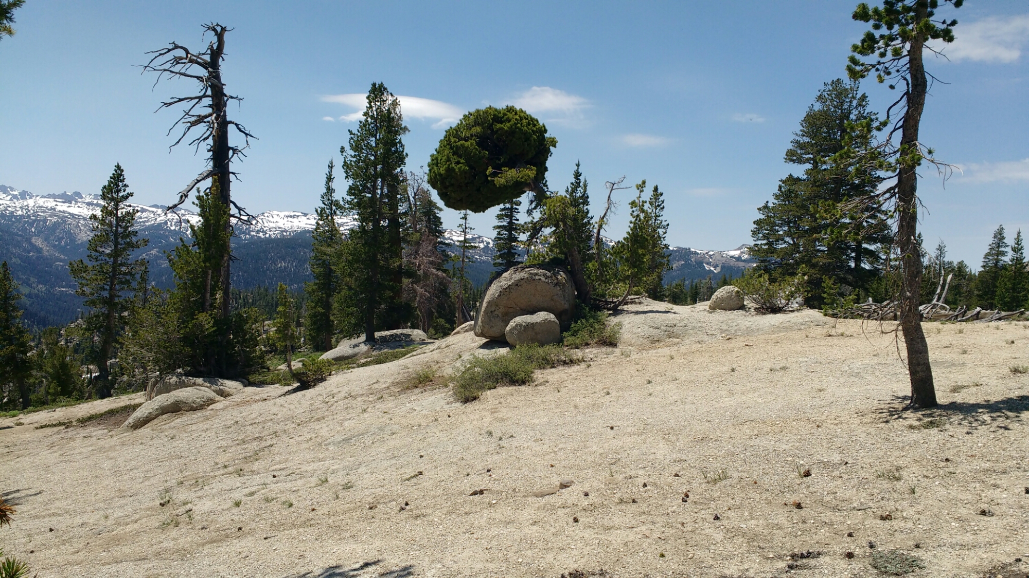 At the top of the ridge was a funny pile of dark colored rocks, different from the surrounding granite.