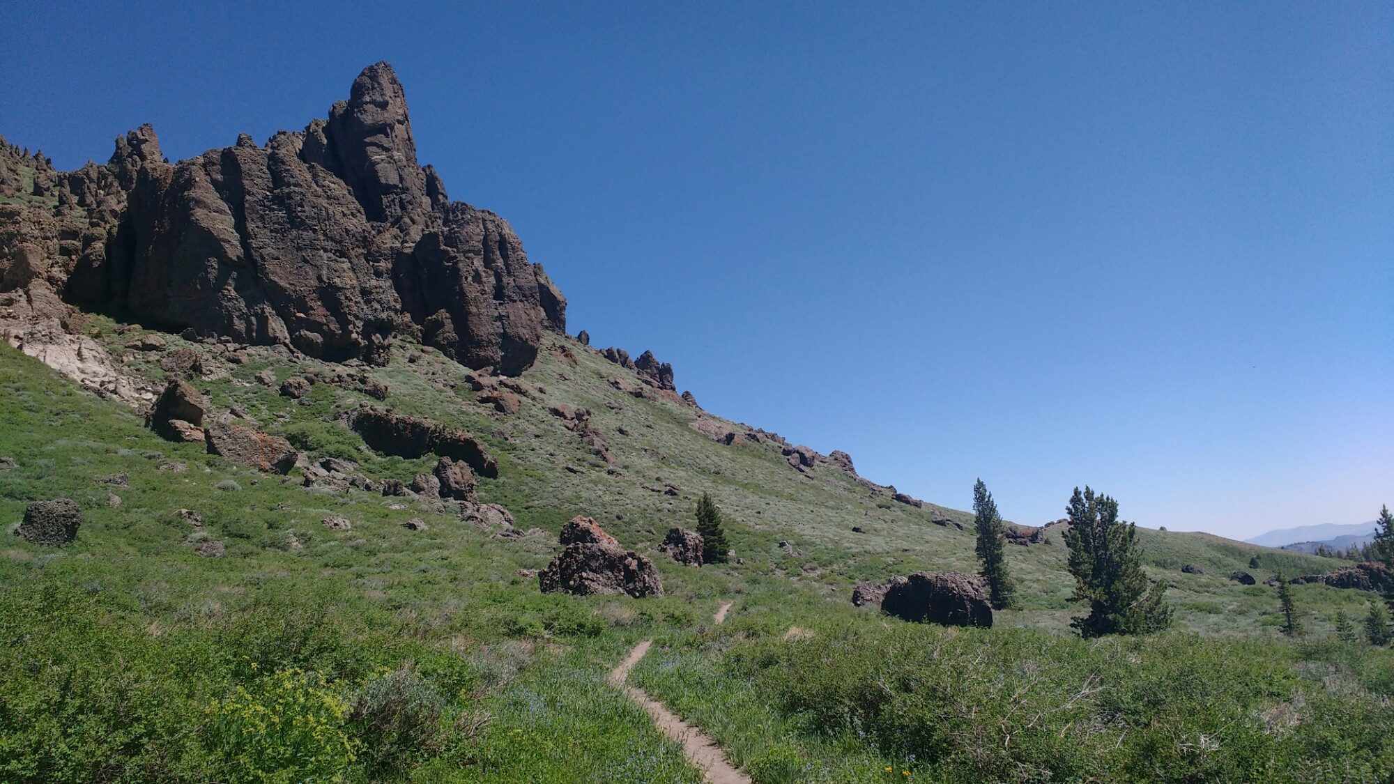 Moving slowly due to a full belly, I proceeded out of the woods across grassy and shrubby slopes crowned with rough brown rock.