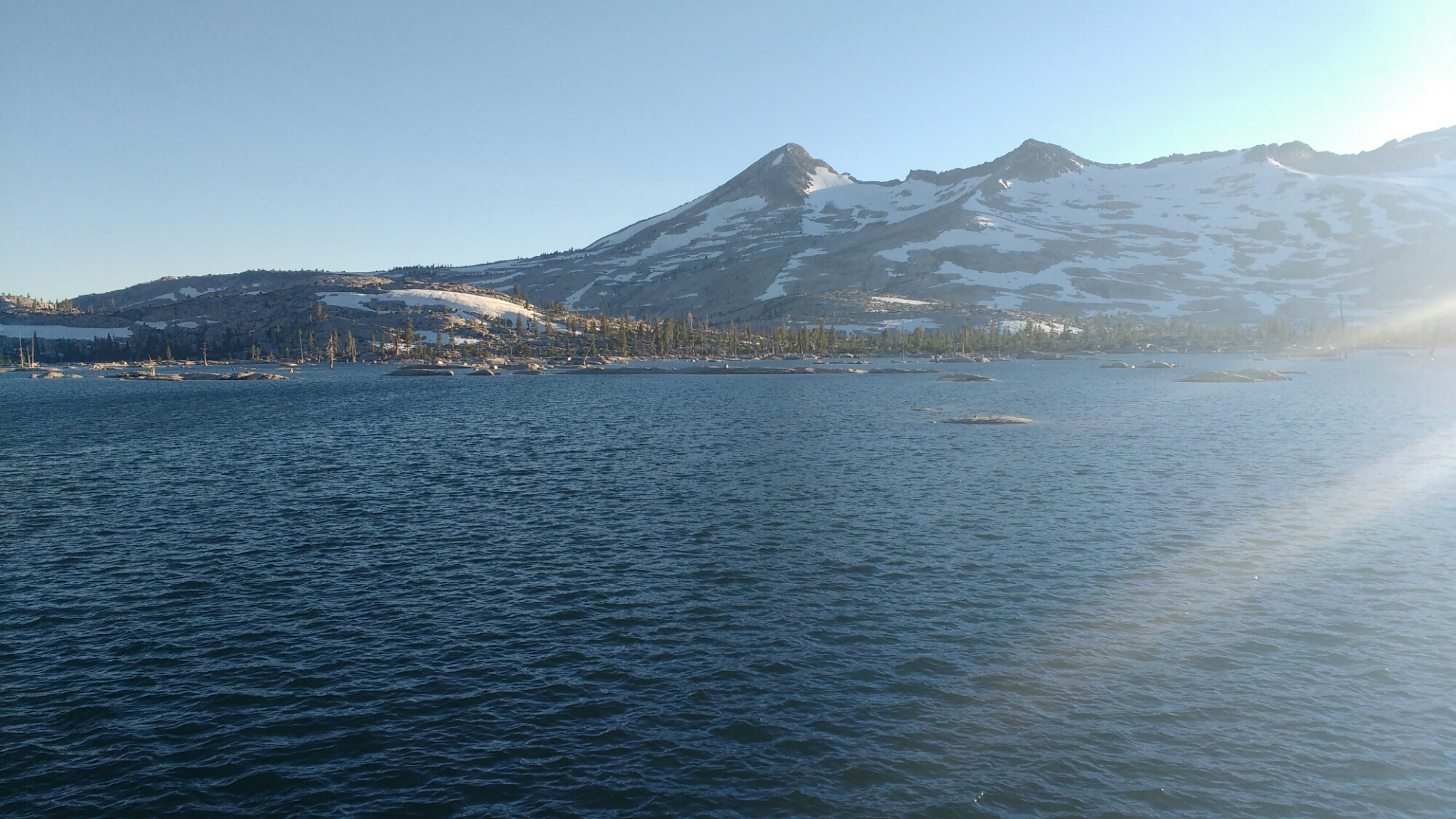 I’d intended to go to church today since it was the first Sunday I’ve been in civilization and been aware of the day of the week. Instead, I got up and wrote blog posts to get caught up then went to Lake of the Sky outfitters to use their computer to arrange resupply packages. I’d intended to use Sonora Pass Resupply since the owner gave me a water bottle after I lost mine on a glissade coming down from Sonora Pass. I found the website frustrating (ex: it unexpectedly dumped my cart) and so sent a bunch of feedback (gotta keep my software engineering skills fresh somehow, though I didn’t provide great repro steps since I was on a shared computer and didn’t have time to narrow them down) and used Zero Day resupply instead. I’ll revisit Sonora Pass Resupply the next time I’ll send resupply boxes which will probably be Ashland. I bought earphones which I’ve been lacking for a while and set up a bunch of music to download on Spotify. At this point it was lunch time. On my way out, I ran Butterfly who was arranging a ride out to Echo Summit and got me a seat. Just before the ride, I weighed my backpack in a fruit scale in Raley’s with four days of food, a little more than a liter of water, and two trekking poles, and a hip belt I’ve detached but couldn’t ship out, it was about 24.5 lbs. My lack of caring has paid off. Then the ride showed up and a man who paints murals for a living gave me and Timo a ride to Echo Summit while his wife drove Turbo and Butterfly.