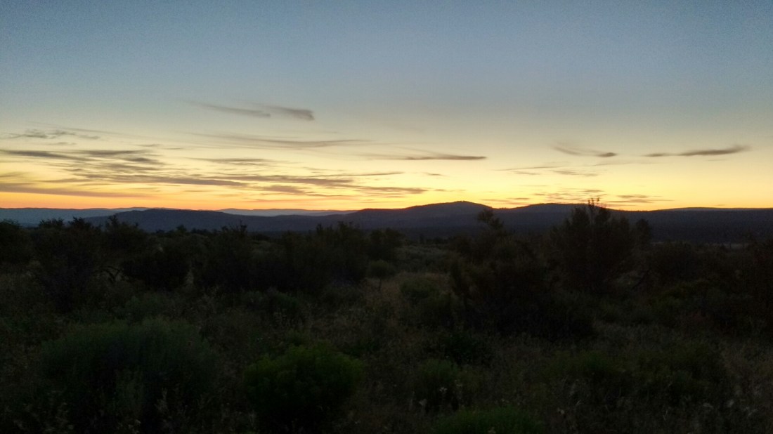 I got up at 3am with Little Red Riding Hood to hike as much of Hat Creek Rim before the sun caught us in the open. Sunrise was just a plus.