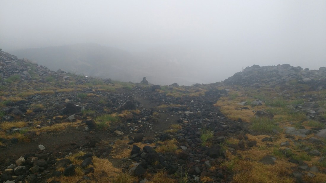 A cairn in the mist creates a wonderful sense of adventure. On a different trip, a friend and I once had to play Marco Polo to locate each other as we hunted for cairns to follow in a dense fog.