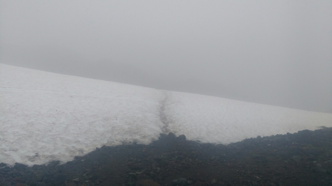 Over the snow and into the fog the hiker tracks do go. Where do the go? Nobody knows! But follow them we wiiiill. (To the tune of Over the River and Through the Woods).