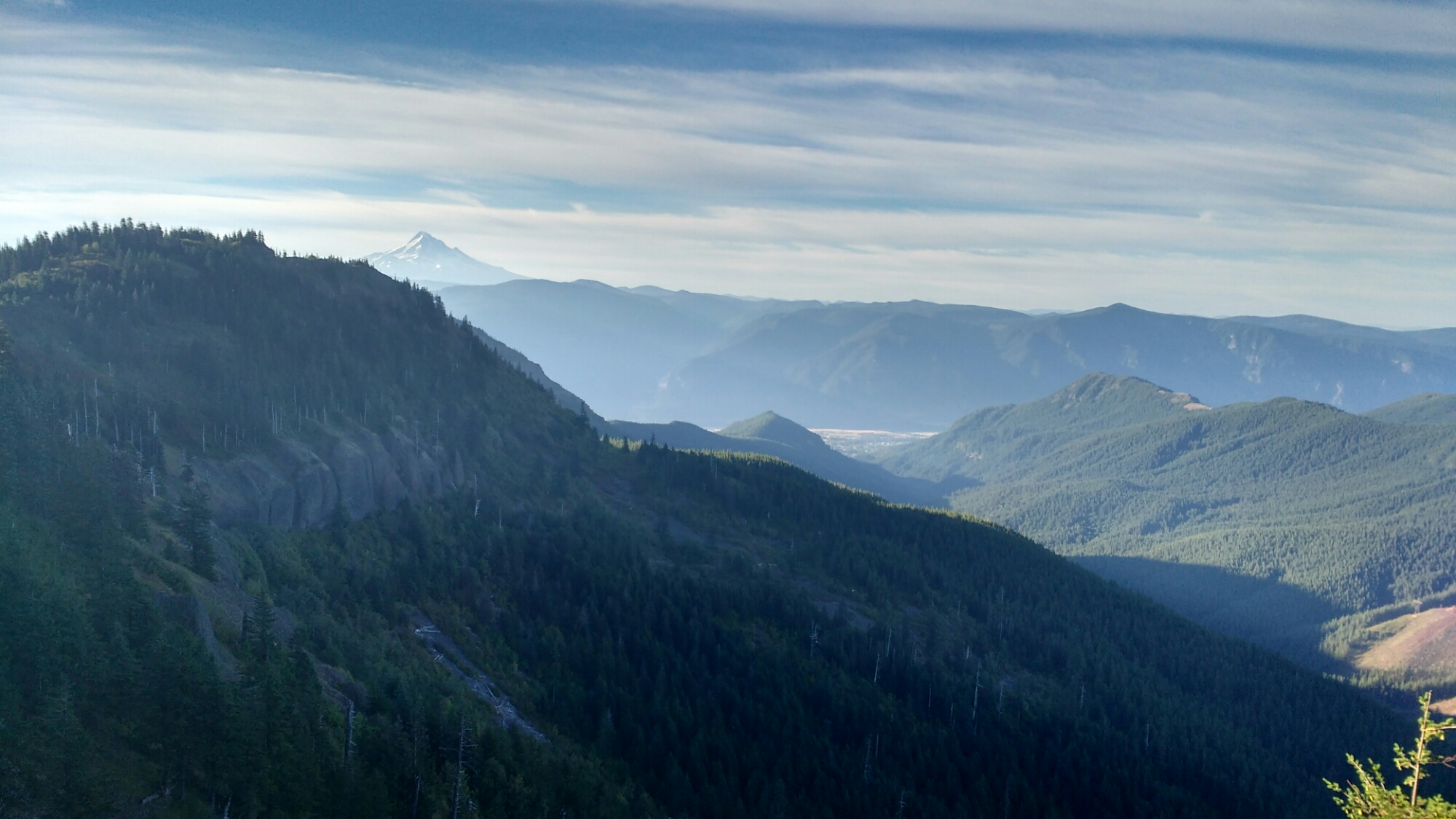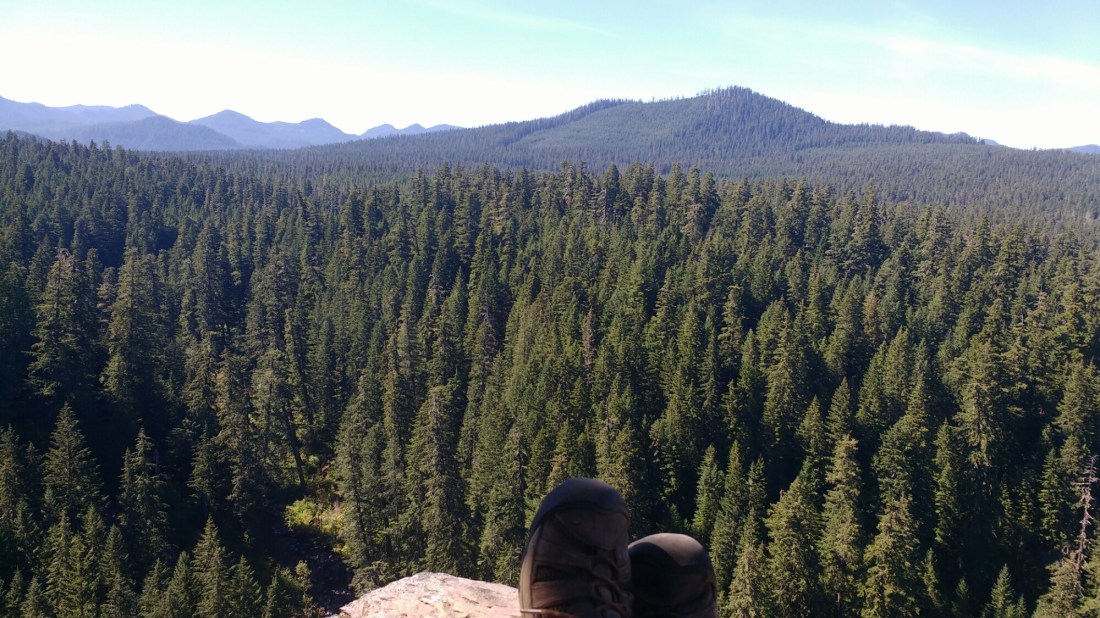 This was today’s one view. Forested hills with a creek (not pictured) running near the base of the ledge.