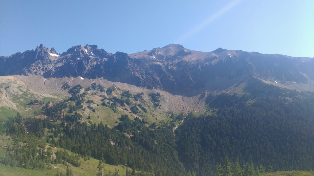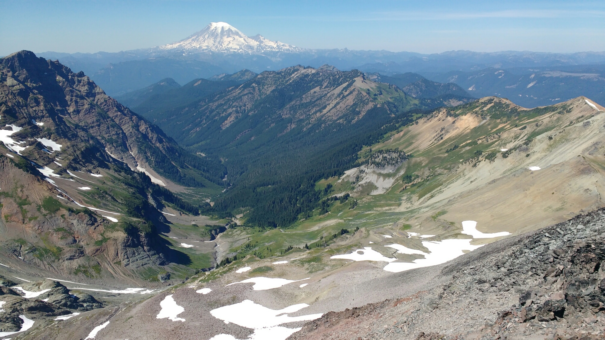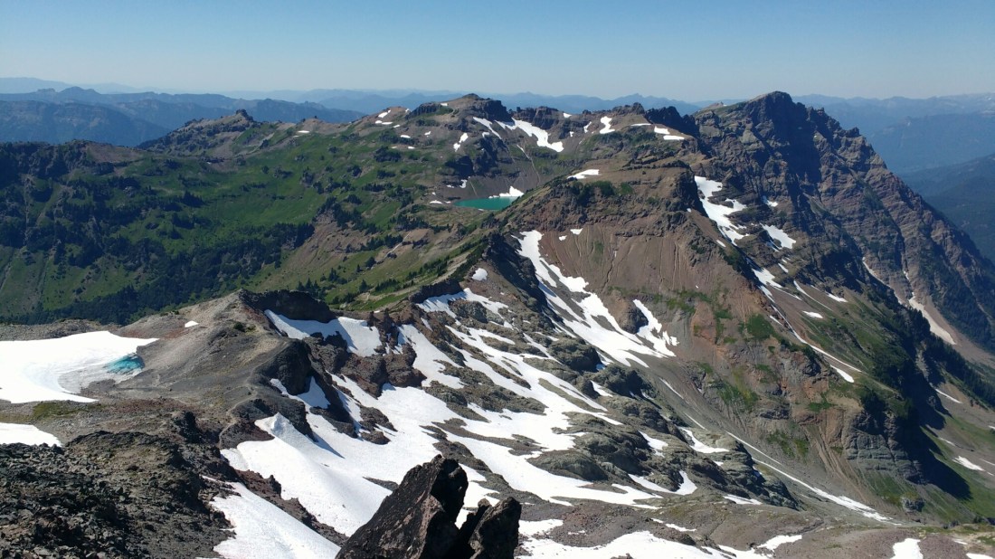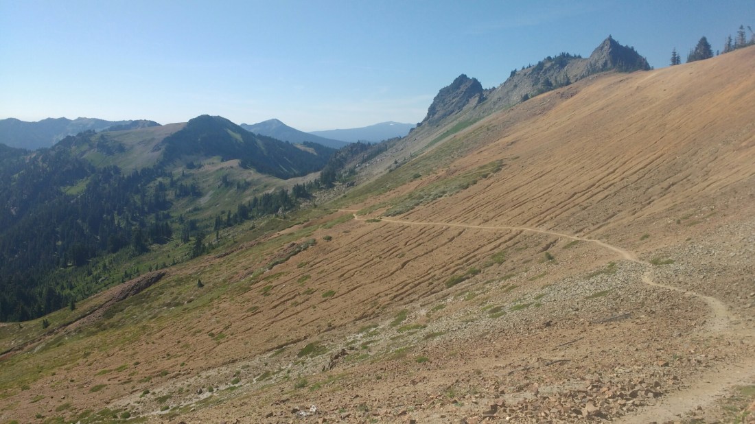 The knife edge on the right side of the previous valley. I’m not sure how this will turn out at full resolution but looks where the trail goes. When walking it, I was able to see deep into both valleys when looking at me toes. During lunch at my wilderness first aid training, a woman told me how the trail had slid out from under her and fallen away thousands of feet below. Having walked that line, I’m pretty sure her story was from somewhere along it.