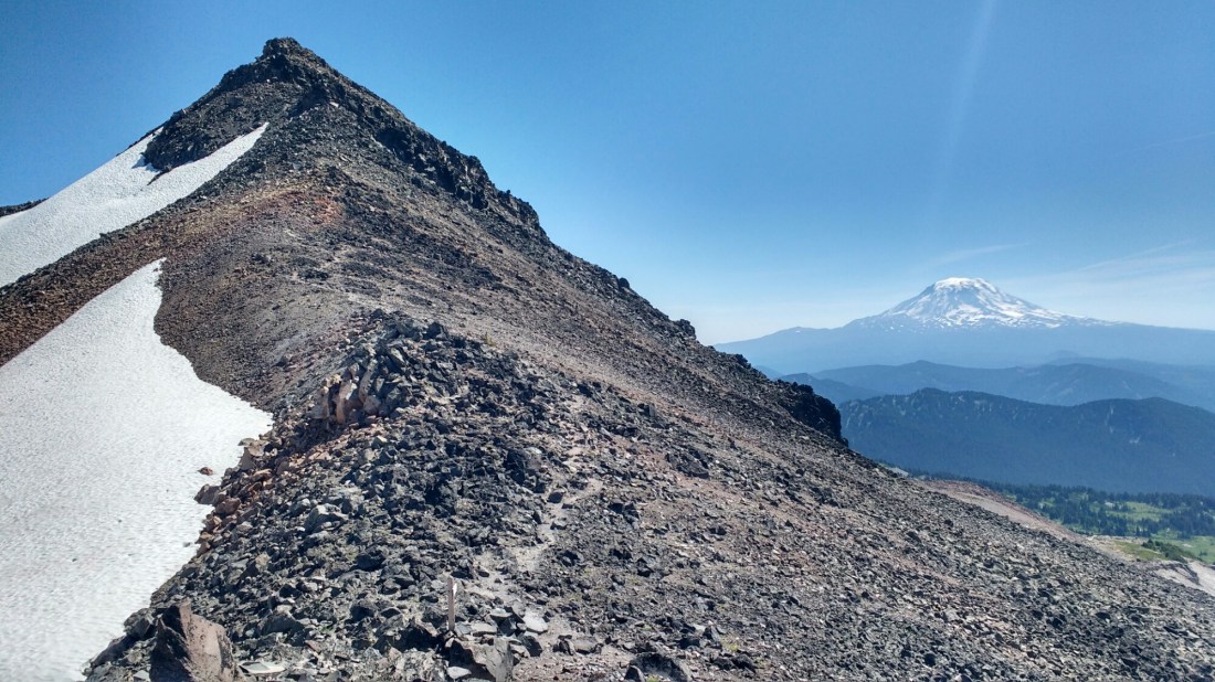 And finally, coming all the way around and see in Mt Adams again. The nearby peak is composed of large pieces of slate like you might see in a stacked stone wall or slate walkway.