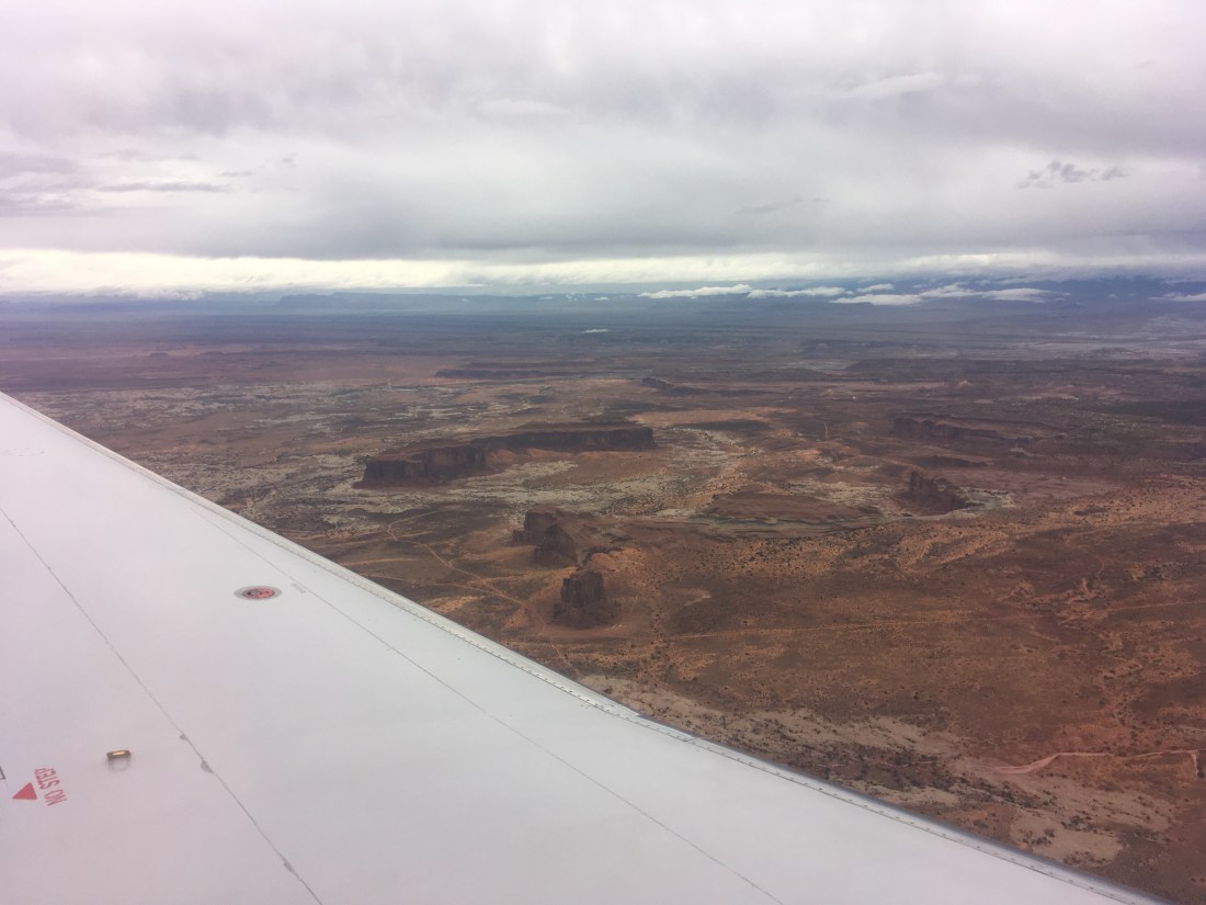 My alarm went off at 6am to wake me on the floor of gate B83 in the Denver airport. Camping gear makes sleeping at the airport much more comfortable but until the tests of the emergency warning system stopped around 3am, I didn’t sleep well enough to dream. So I slept on the flight to Canyonlands Airport outside Moab, UT. I woke that time by turbulence shortly before landing and slid the window screen up.