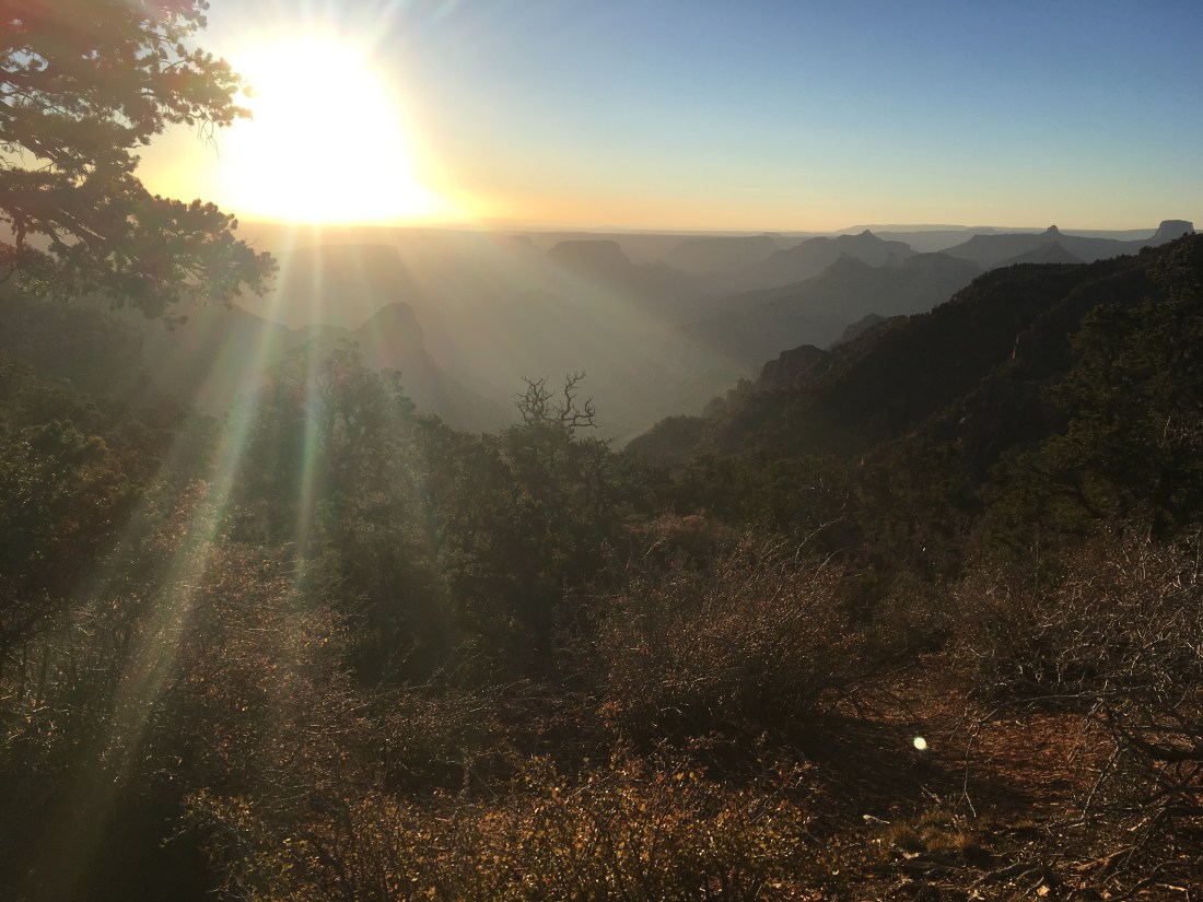 After diverging from the Arizona Trail onto a wide dirt road and walking it for a few miles, the Grand Canyon finally came into view.