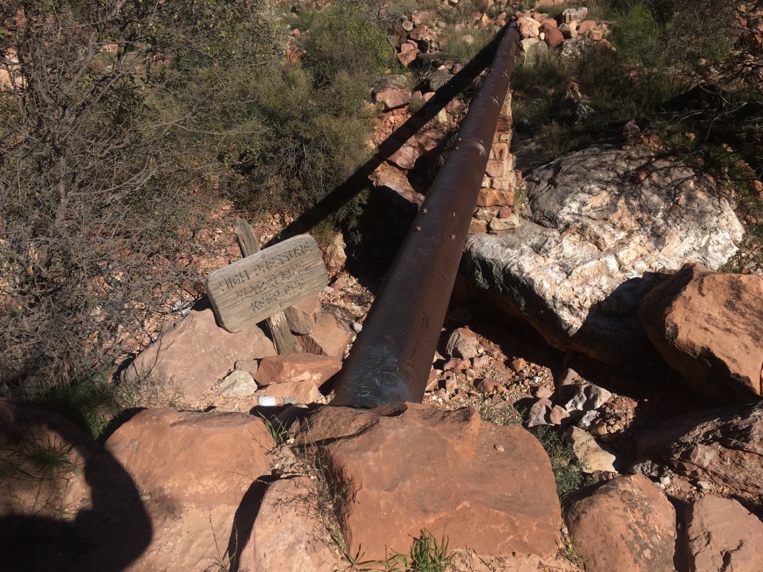 It’s also interesting to try to follow the water pipe which carries water from shortly below the north rim over to the South Rim’s bit of civilization. I assume they do this so there’s less pumping required though you do pass a pumping station. Tracing wires, which I assume are power lines when they appear was also interesting. The lines themselves are thin enough that they’re hard to see but you can spot the posts and try to guess where they go next.